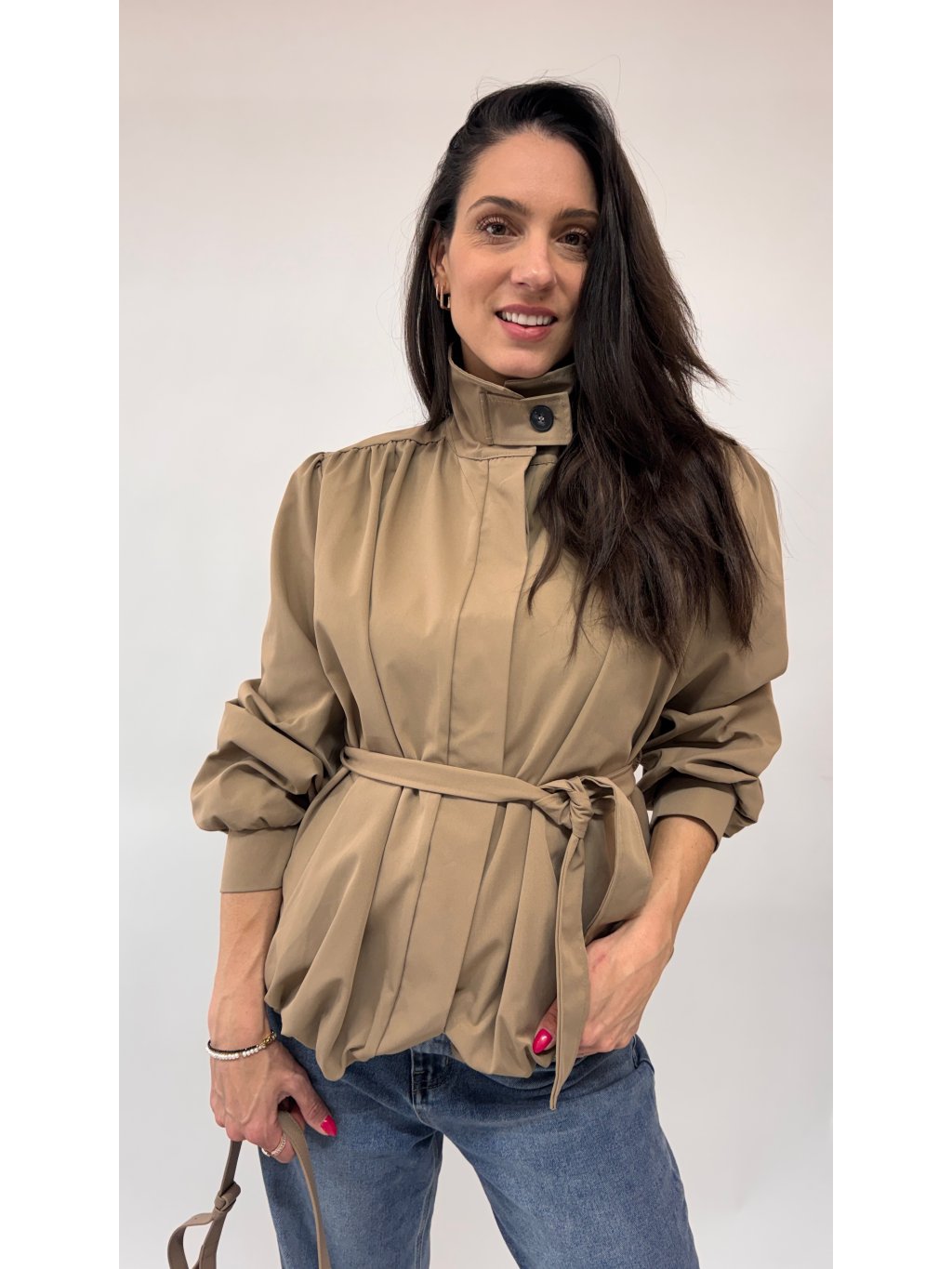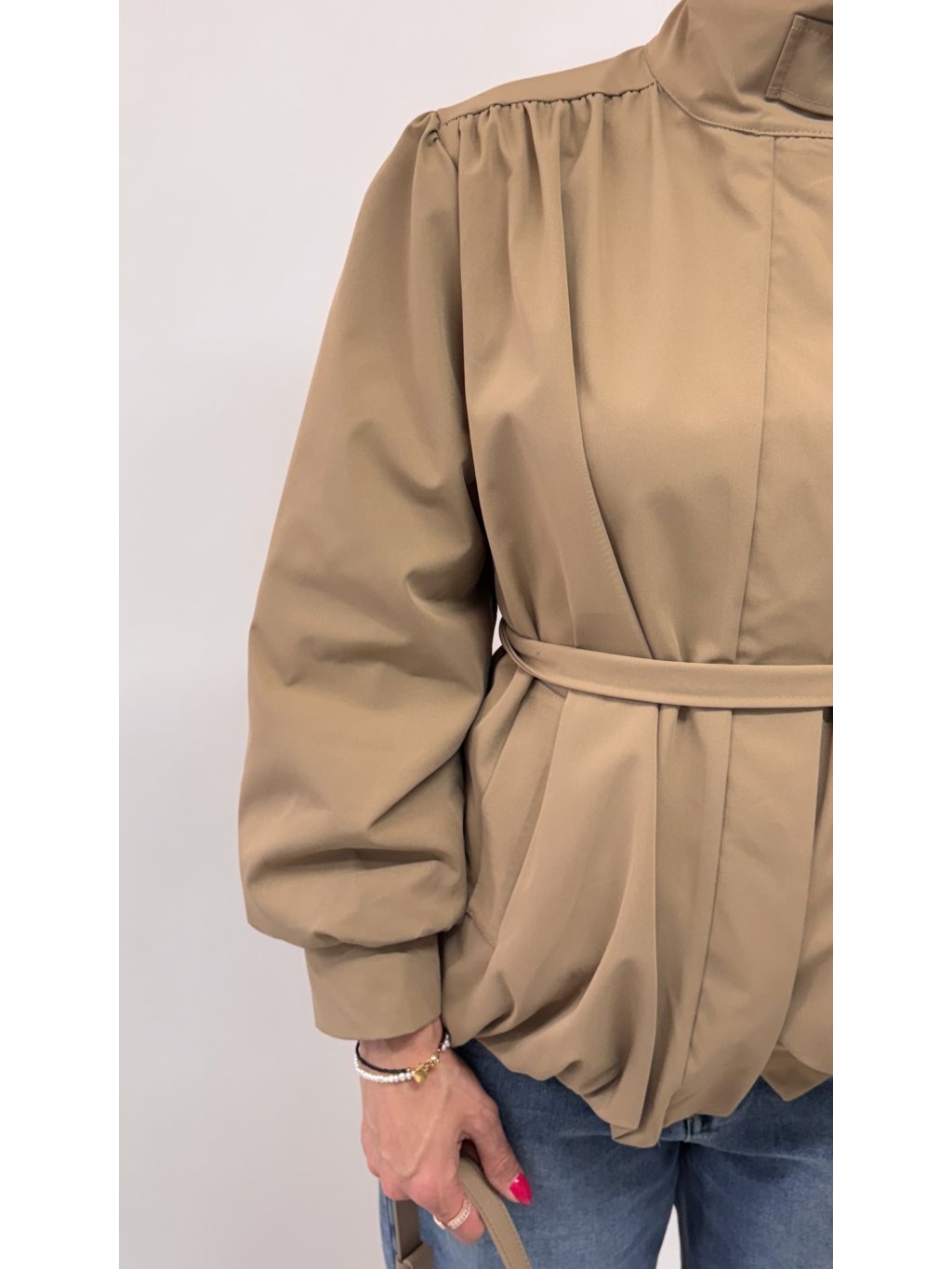 Dámsky trenchcoat s opaskom a puff rukávmi • materiál 65% polyester, 35% polymér• model s podšívkou• zapínanie na gombíky• voľnejší strih * made in Italy