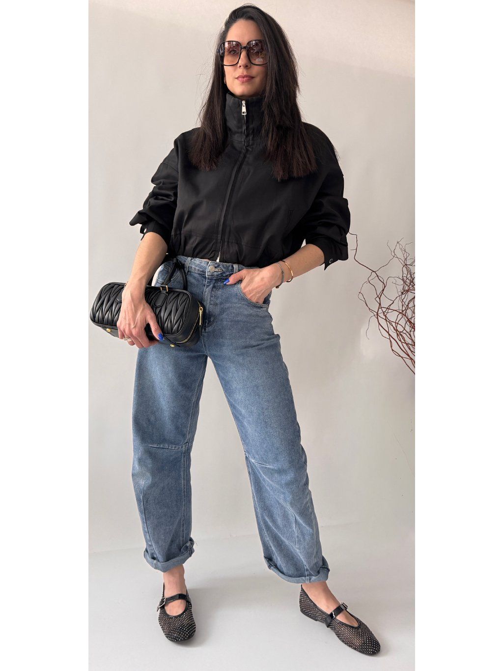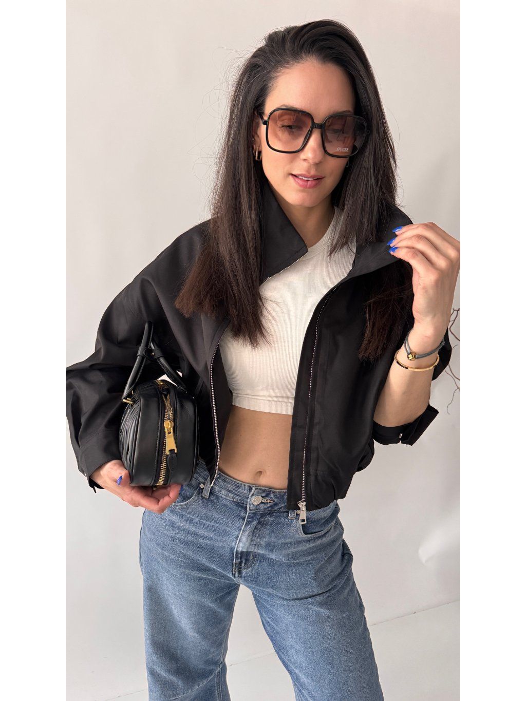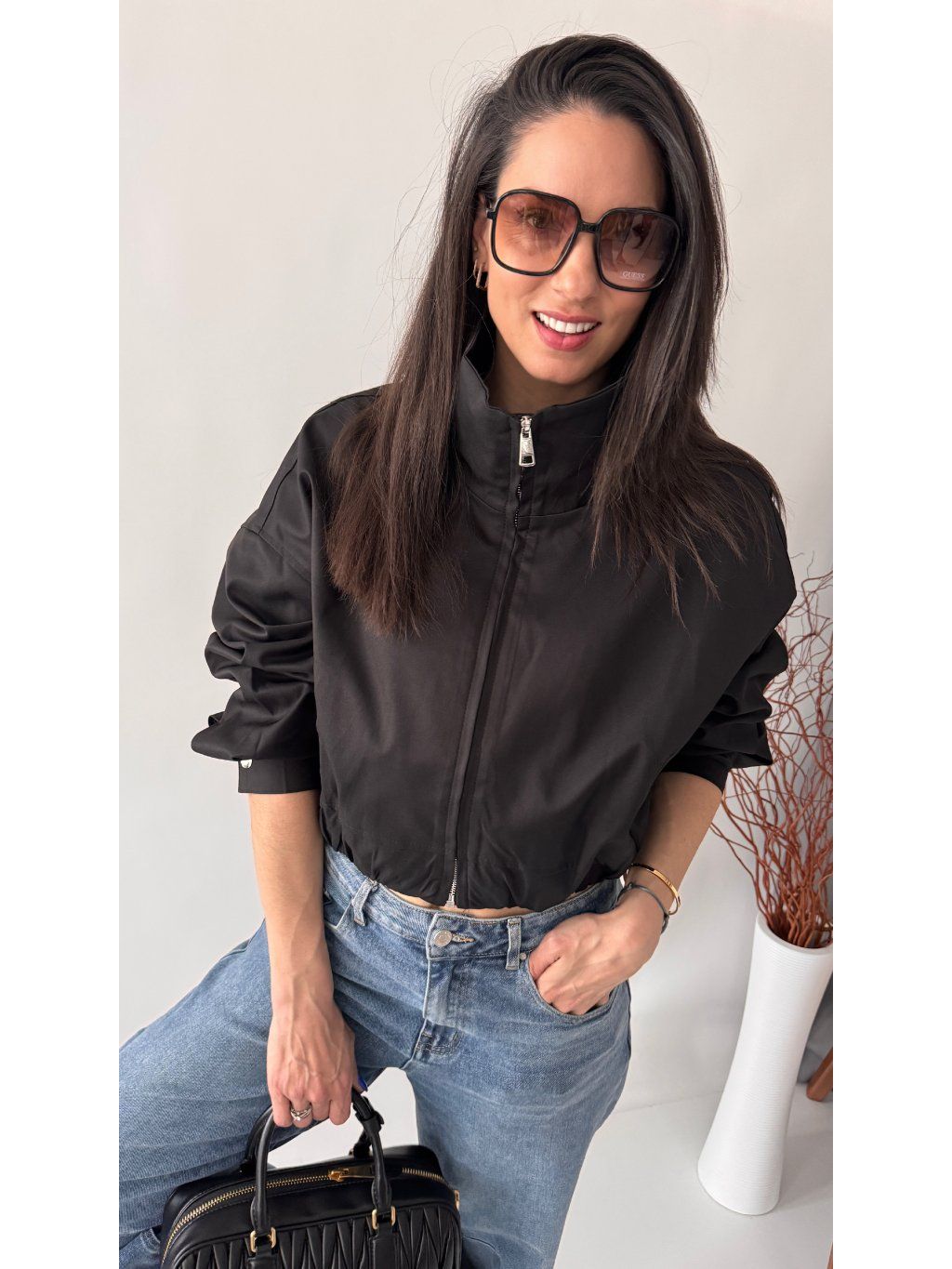 Dámska bunda v čiernej farbe • prechodná šuštiaková bunda s kapucňou (skrytá v golierovom vrecku)• bunda nie je podšitá• po oboch stranách vrecká, uzatvárateľné na suchý zips•...