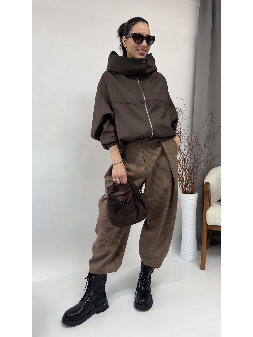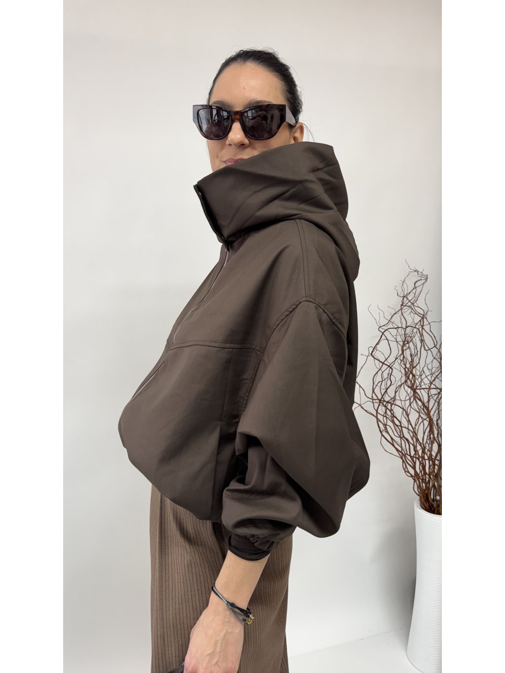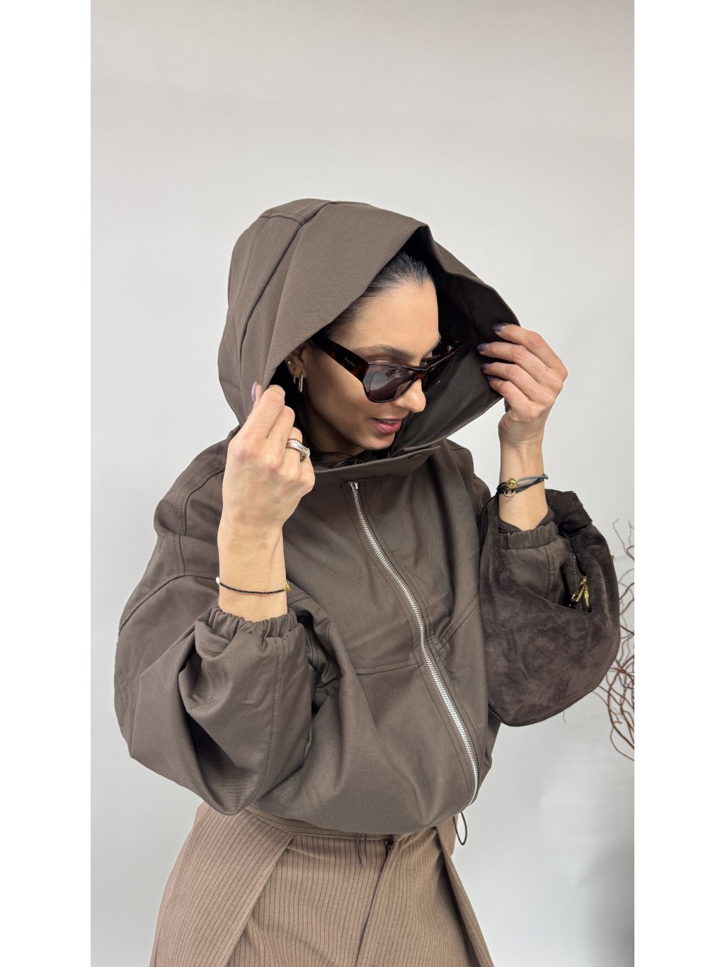 Dámska bunda s kapucňou a zaujímavým golierom • materiál 100% polyester • bunda má podšívku • zapínanie na zips • po oboch stranách vrecká• v páse...