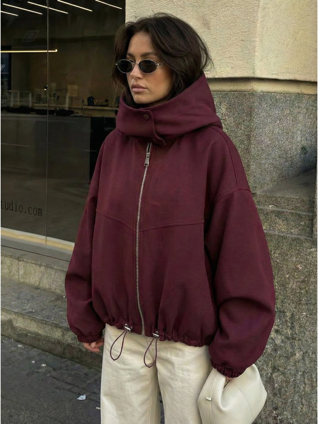 Dámska bunda kratšieho strihu • materiál 100% polyester • bunda má podšívku • zapínanie na zips • po oboch stranách vrecká• v páse šnúrky na stiahnutie...