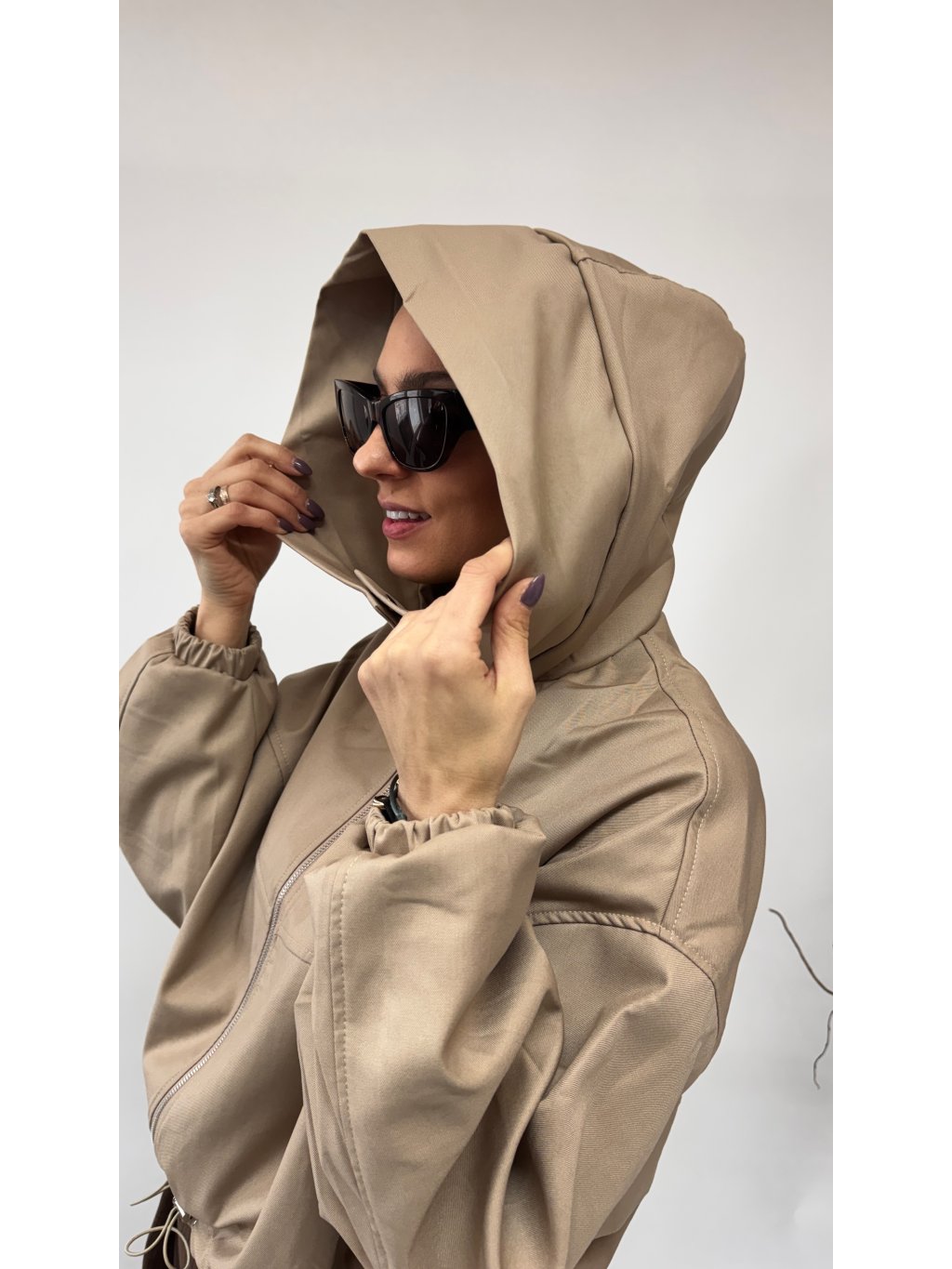 Dámska bunda v svetlohnedej farbe s logo potlačou • materiál 54% polyamid, 46% polyester• prechodná bunda• bunda s kapucňou• v zadnej časti nápis #Guess• po oboch stranách...