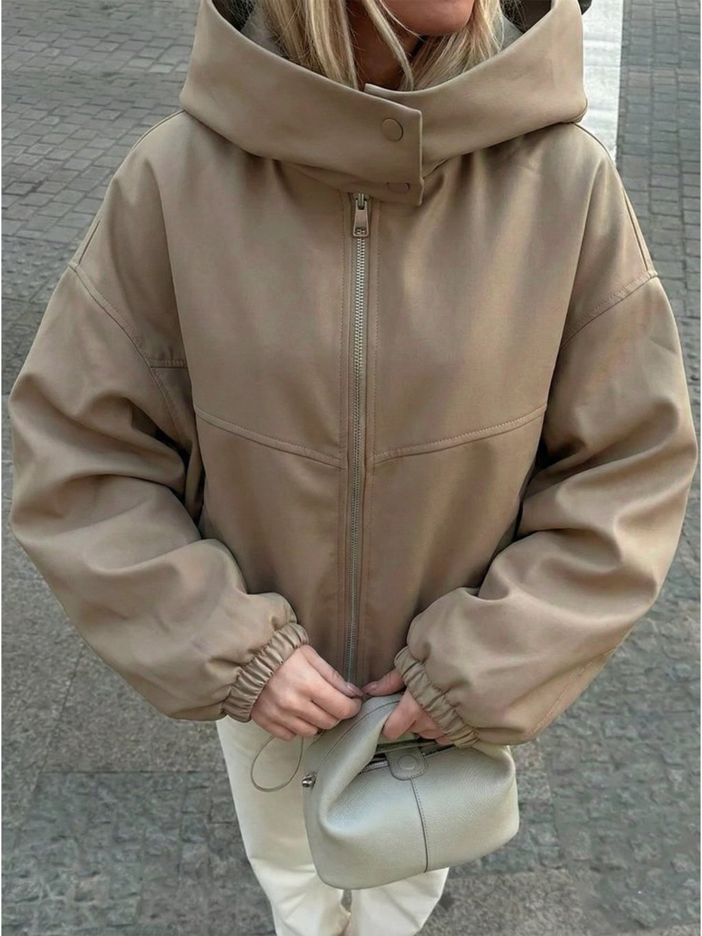 Dámska bunda kratšieho strihu • materiál 100% polyester • bunda má podšívku • zapínanie na zips • po oboch stranách vrecká• v páse šnúrky na stiahnutie...