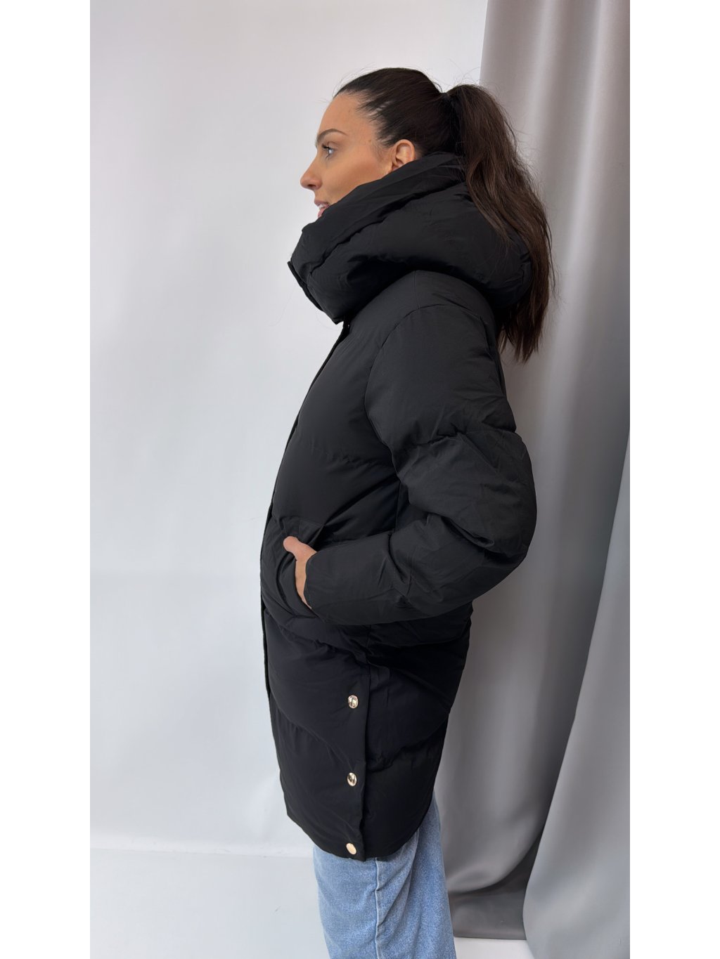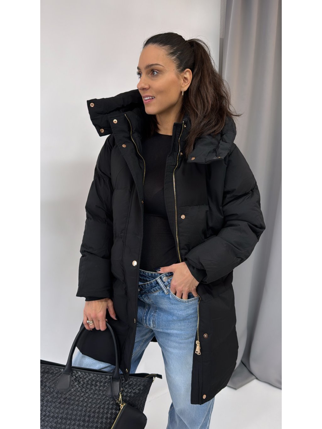 Dámska zimná bunda s odnímateľnou kapucňou • materiál 100% polyester • zapínanie na zips a cvoky • po oboch stranách vrecká • v pase šnúrka na...