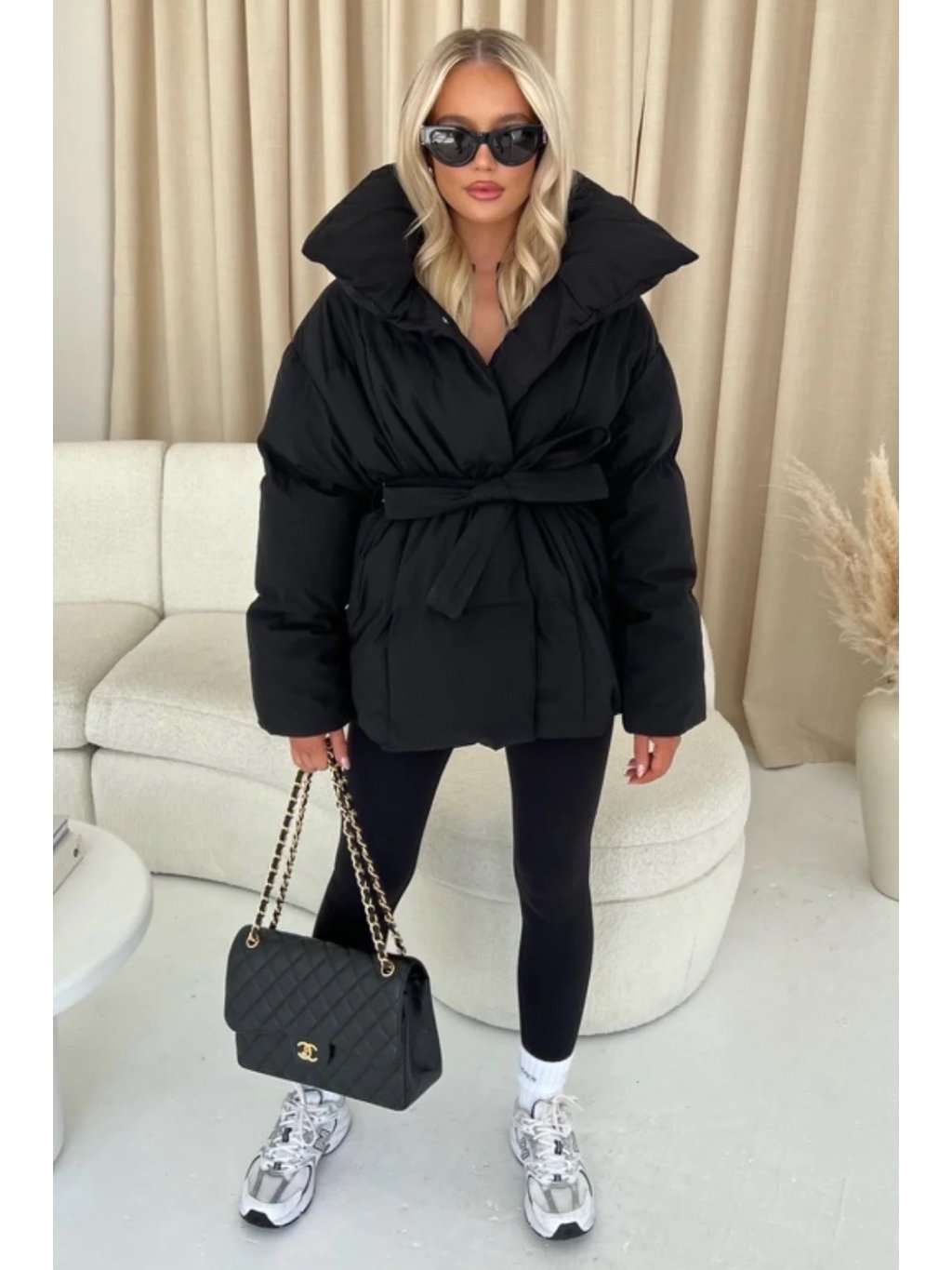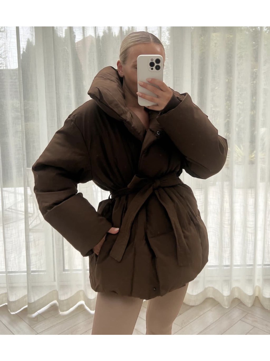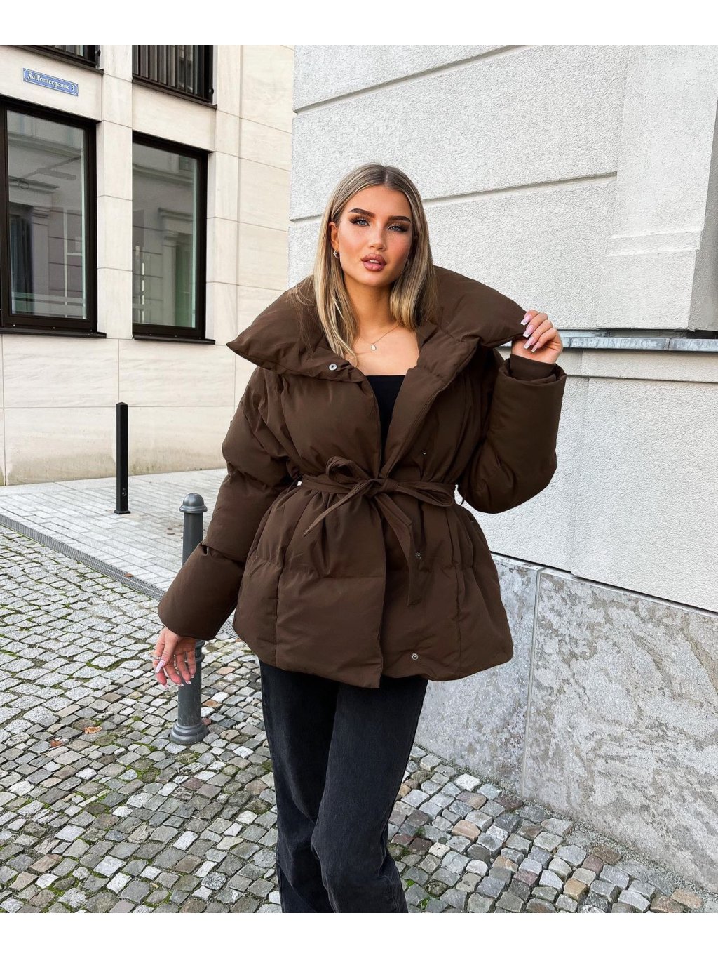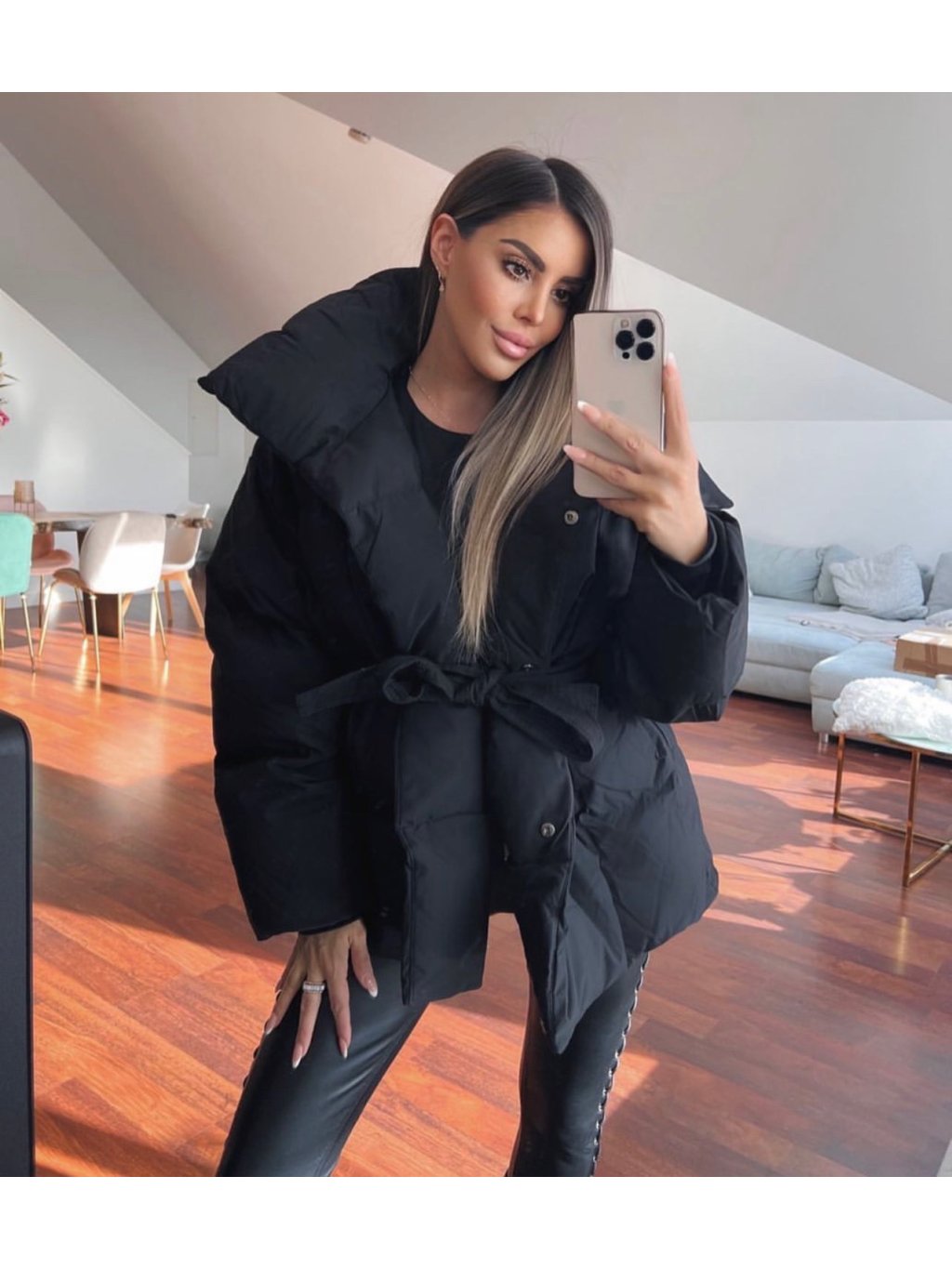 Dámska bunda kratšieho strihu • materiál 100% polyester • bunda má podšívku • zapínanie na zips • po oboch stranách vrecká• v páse šnúrky na stiahnutie...