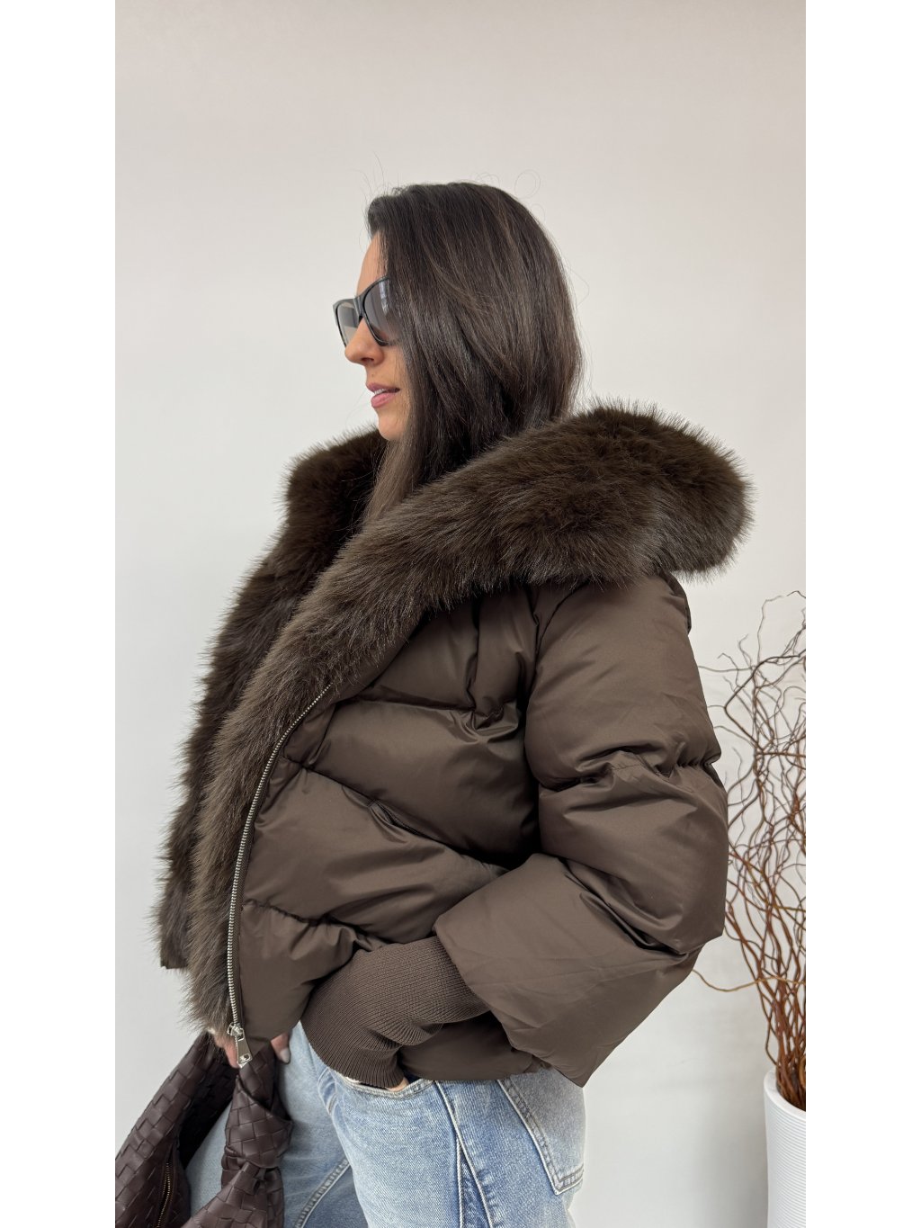 Dámska bunda s umelou kožušinou • materiál 100% polyester • zapínanie na zips • golier aj vnútro z umelej kožušiny• po oboch stranách vrecká na zips•...