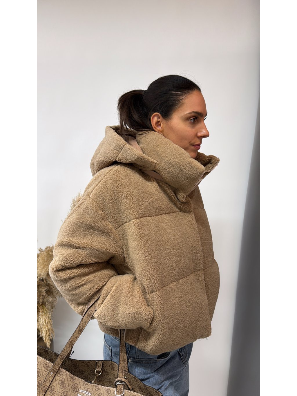 Dámska bunda kratšieho strihu • materiál 100% polyester • bunda má podšívku • zapínanie na zips • po oboch stranách vrecká• v páse šnúrky na stiahnutie...