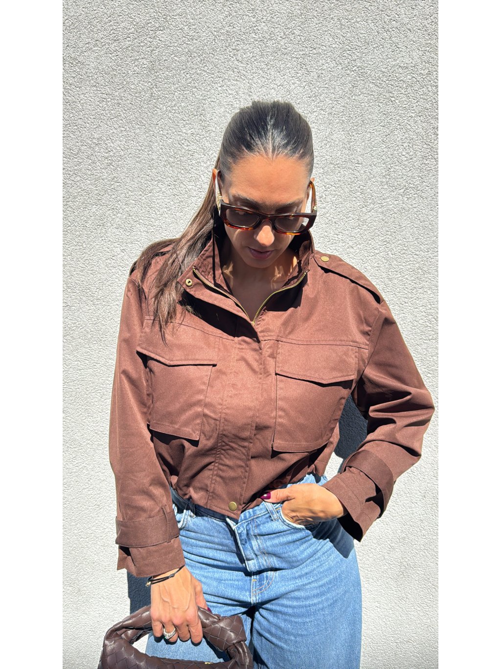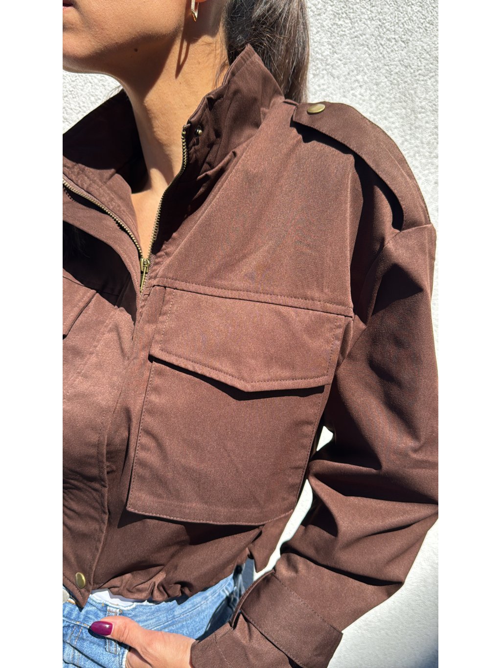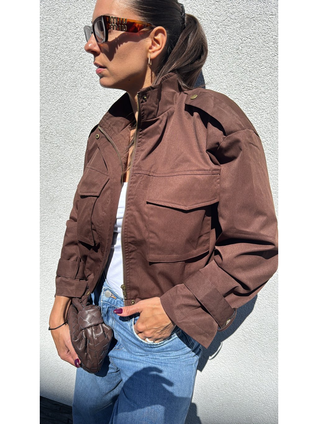 Dámska bunda kratšieho strihu • materiál 100% polyester • bunda má podšívku • zapínanie na zips a cvoky • po oboch stranách vrecká *...