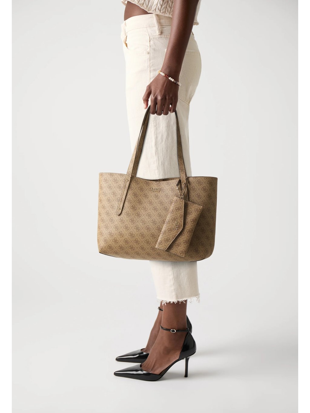 Dámska shopper kabelka 2 v 1 v svetlohnedej farbe so 4g logo potlačou (latte logo) z kolekcie POWER PLAY