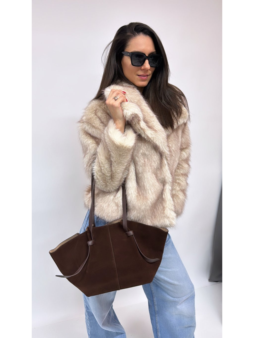 Dámska shopper kabelka 2 v 1 v svetlohnedej farbe so 4g logo potlačou (latte logo) z kolekcie POWER PLAY
