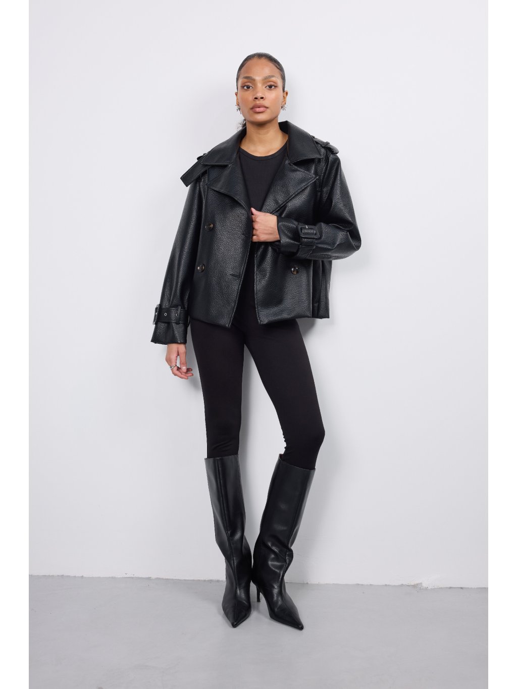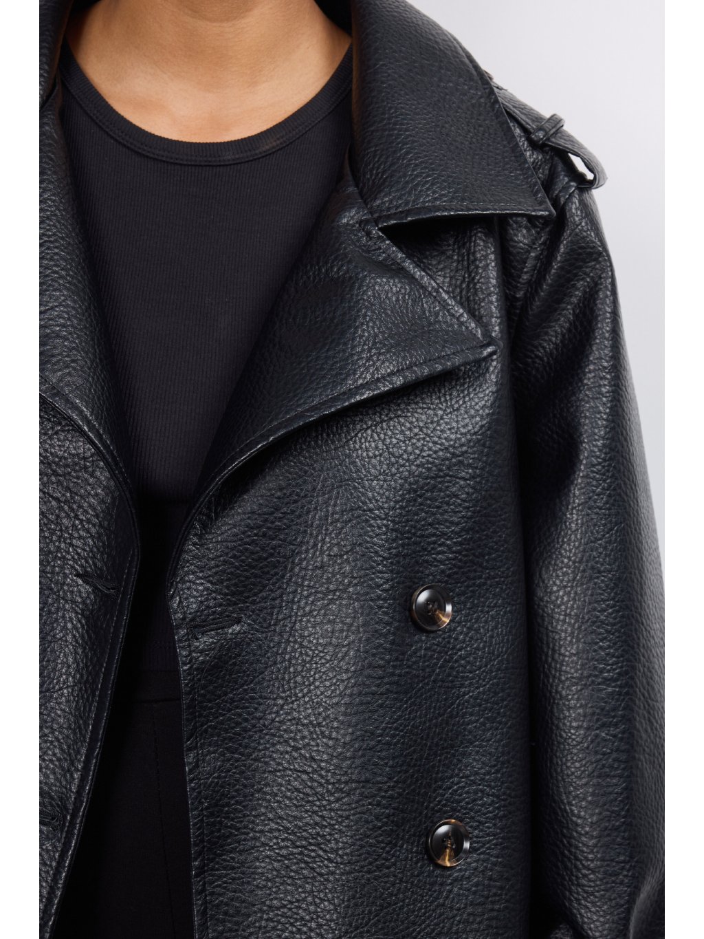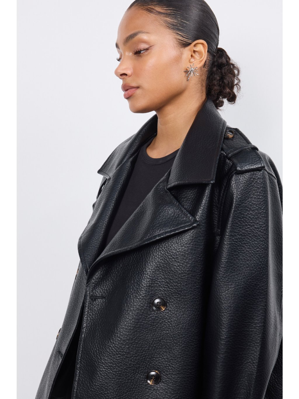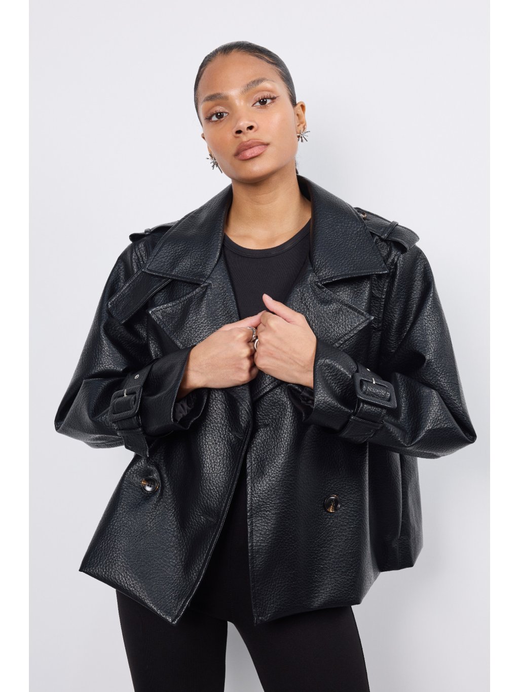 Dámska koženková bunda s jemnými vypchávkami na pleciach • materiál 100% polyester • model s podšívkou - 90,7% polyester, 5% viskóza, 4,3% bavlna • po oboch...