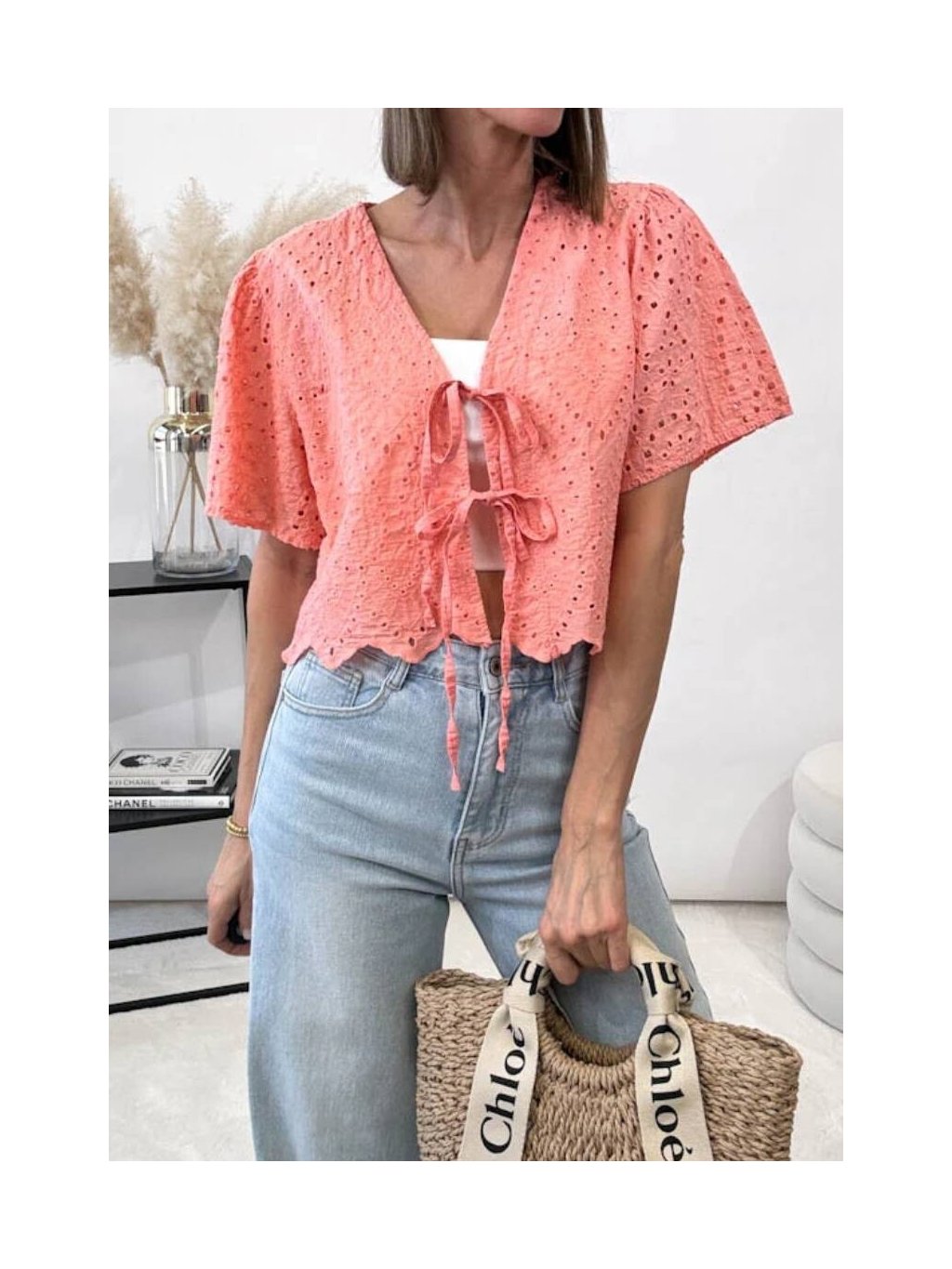 Dámsky top v oranžovej farbe • materiál 85% polyester, 10% viskóza, 5% elastan • V - čkový výstrih * kvalitný produkt poľského výrobcu