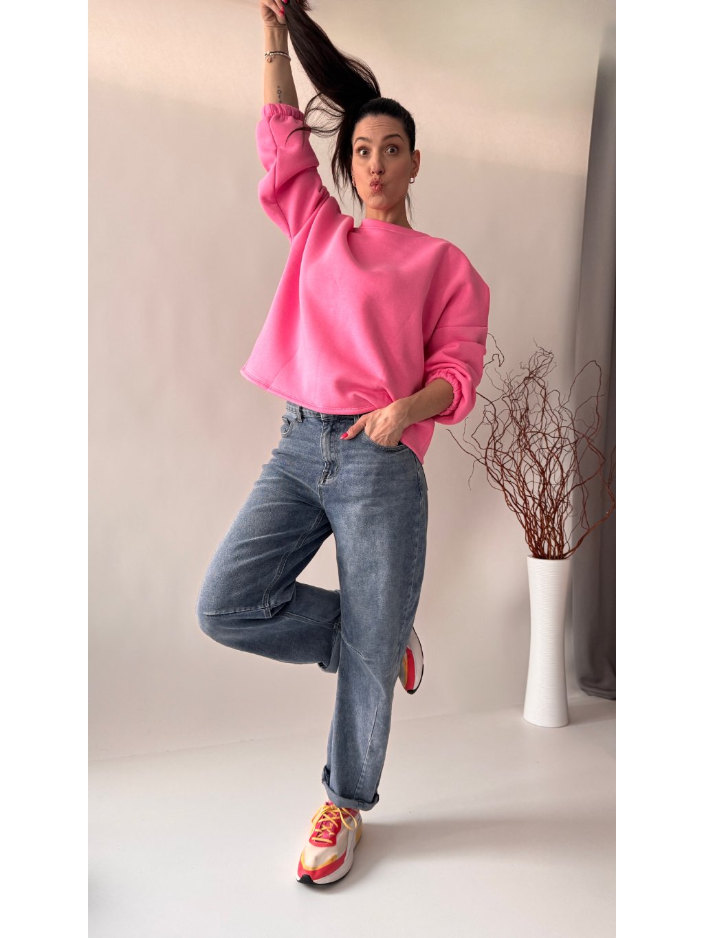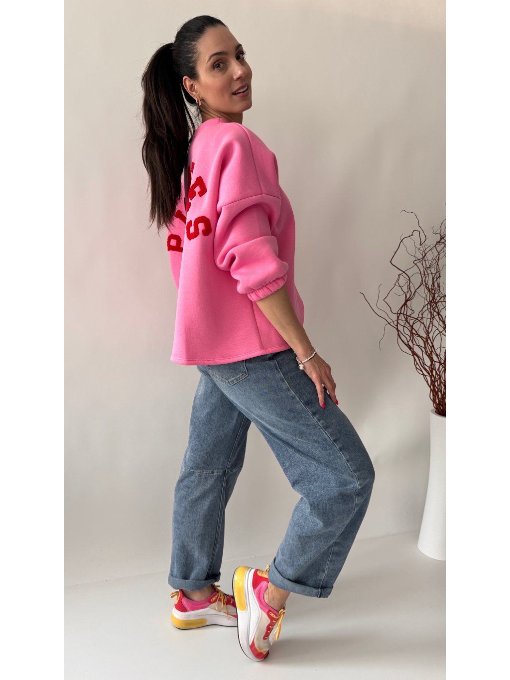 Dámska oversize mikina • materiál 100% viskóza • hrubšia počesaná teplákovina • mikina s potlačou • rukávy aj spodná časť mikiny sú ukončené patentom ...