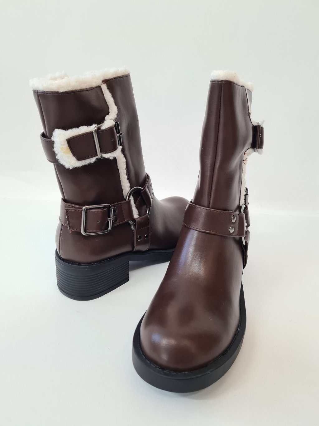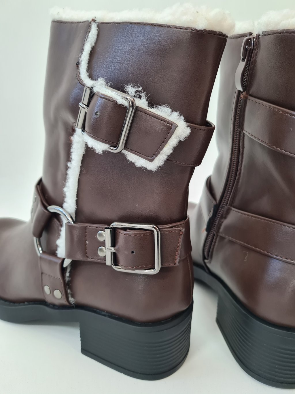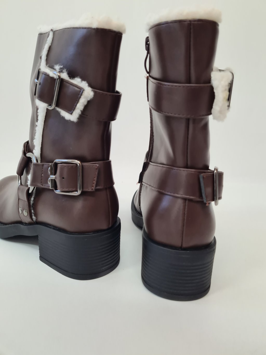 Dámske čižmy • okrúhla špička• model na platforme - 5 cm• zateplený model • materiál - syntetická koža, umelá kožušina, textil