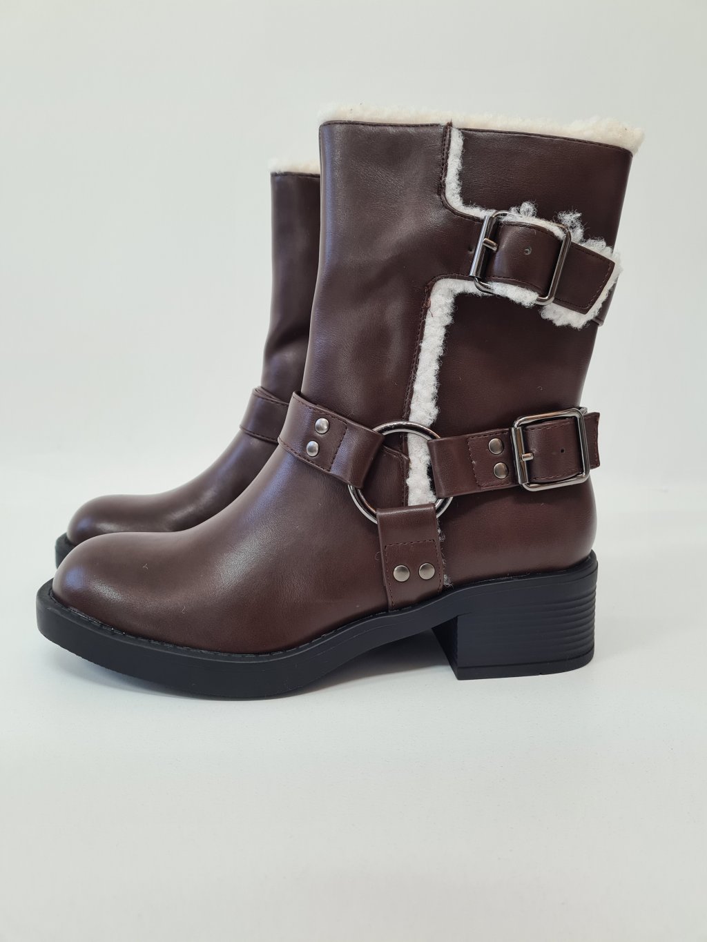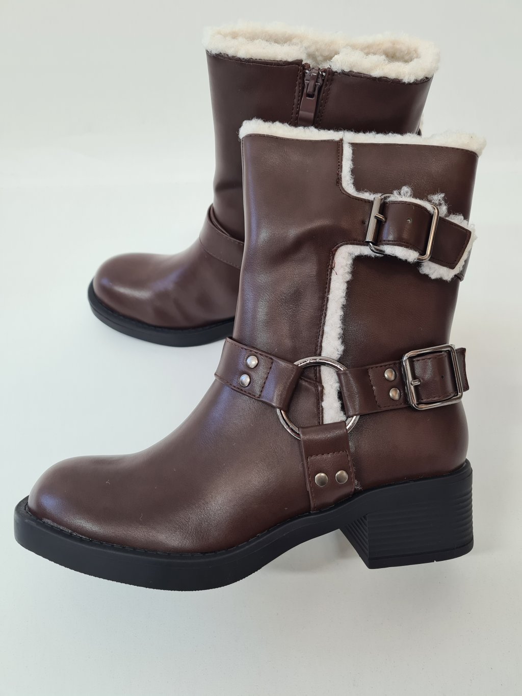 Dámske čižmy • okrúhla špička• model na platforme - 3 cm• zateplený model • materiál - syntetická koža, umelá kožušina, textil