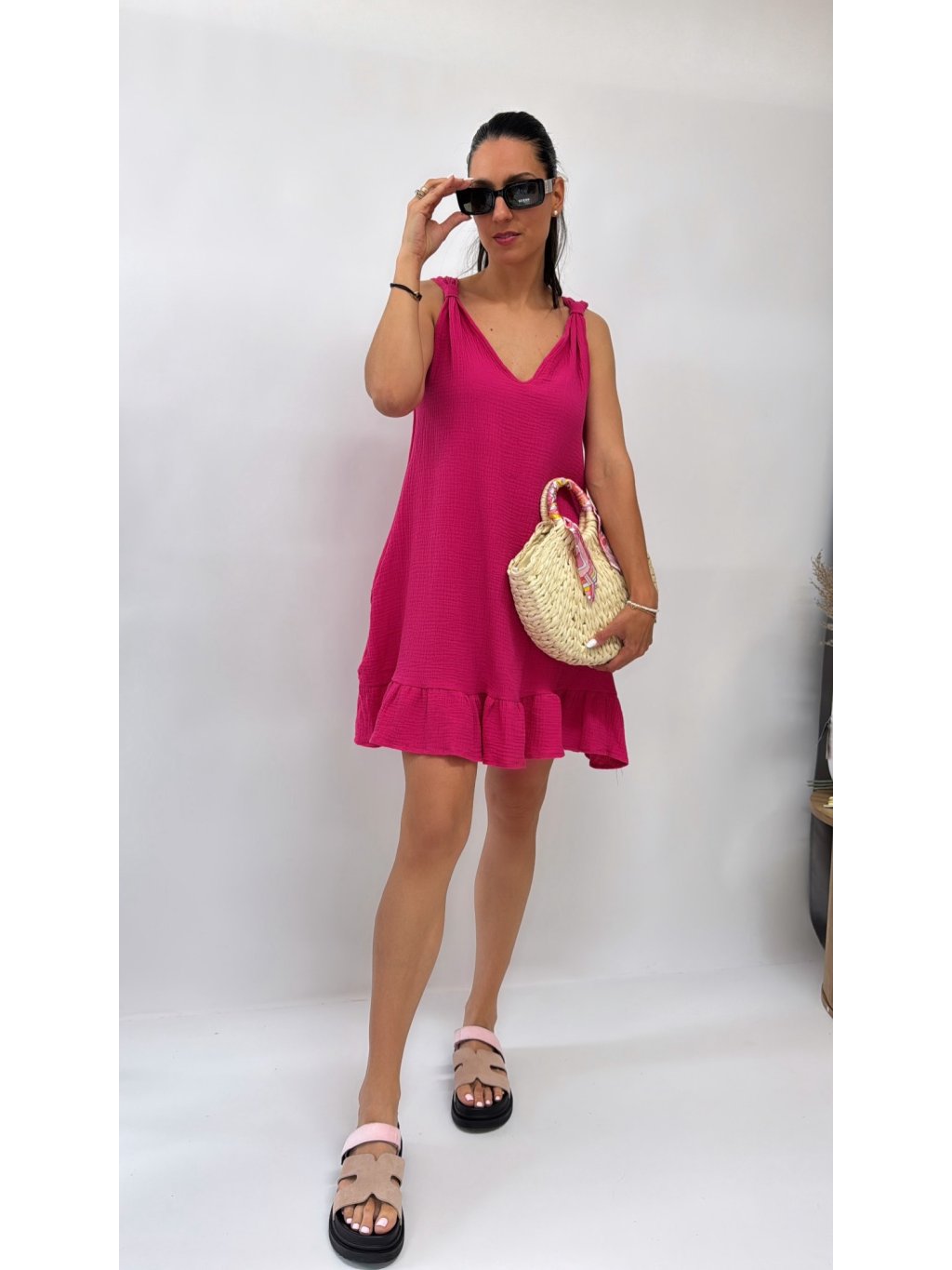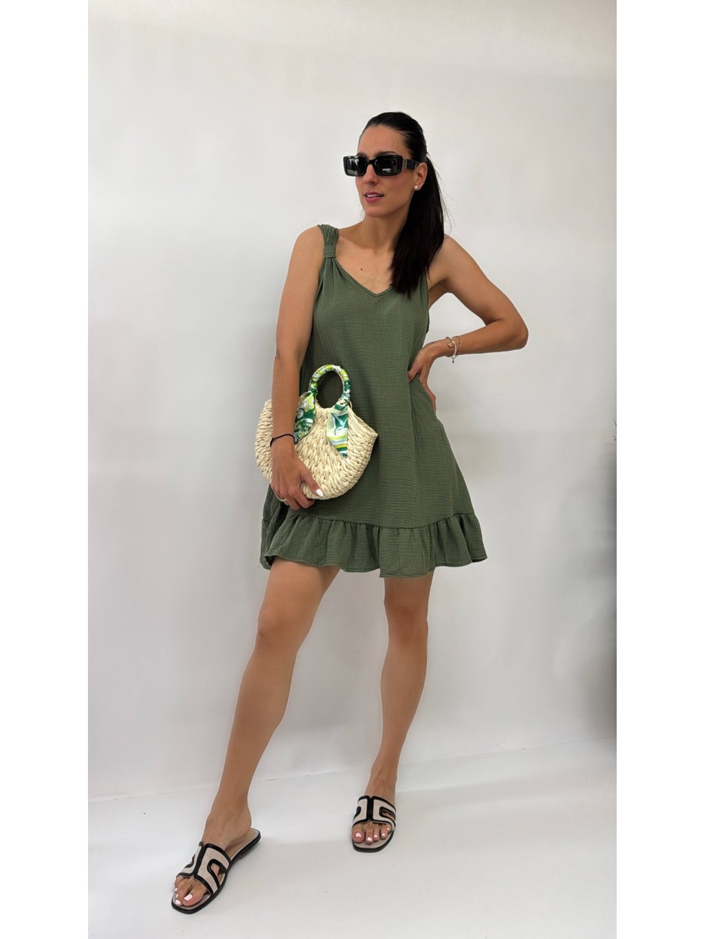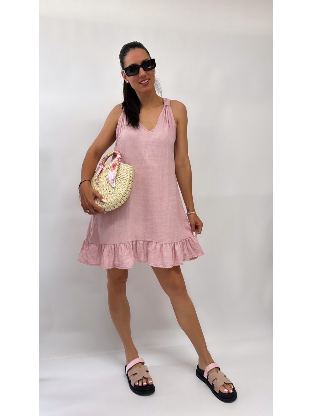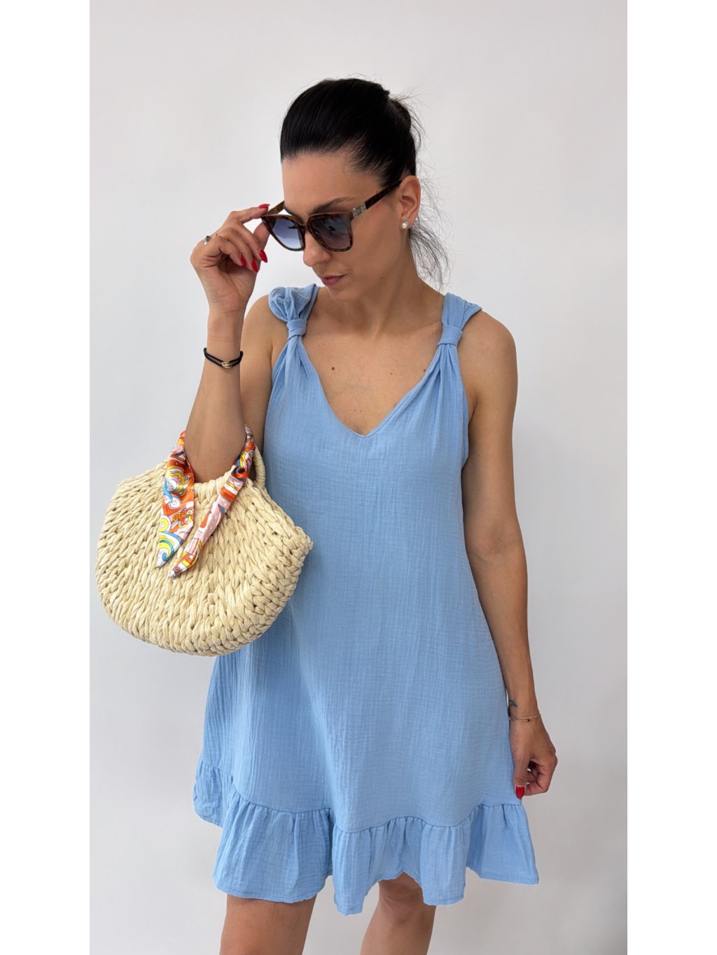 Dámske šaty na ramienka • materiál 100% lyocel • áčkový strih • ramienka na viazanie - dĺžkovo nastaviteľné * made in P.R.C