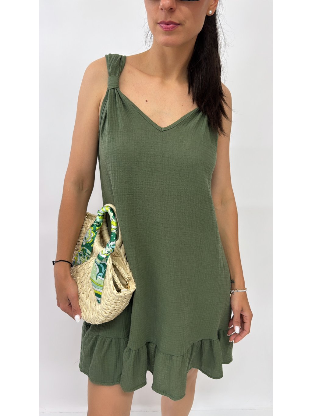 Dámske bavlnené šaty na ramienka v UNI veľkosti • materiál 98% bavlna, 2% elastan • áčkový strih • v prednej časti viazanie na šnúrku * made in Italy...