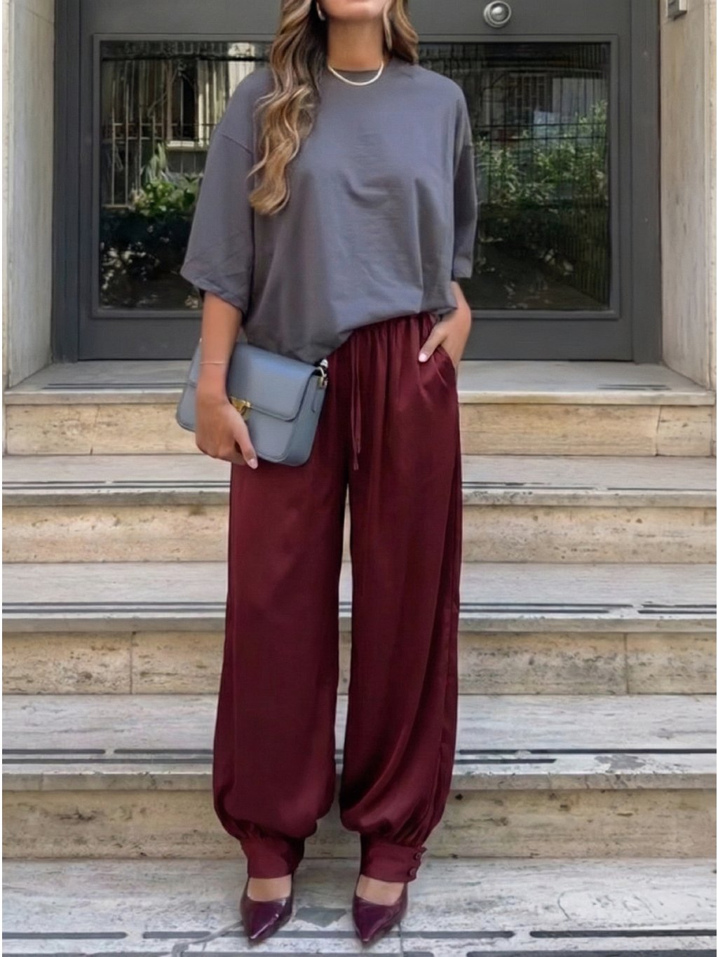 Dámske nohavice v UNI veľkosti • materiál 80% viskóza, 20% hodváb • v páse na gumu• široký strih * made in Italy