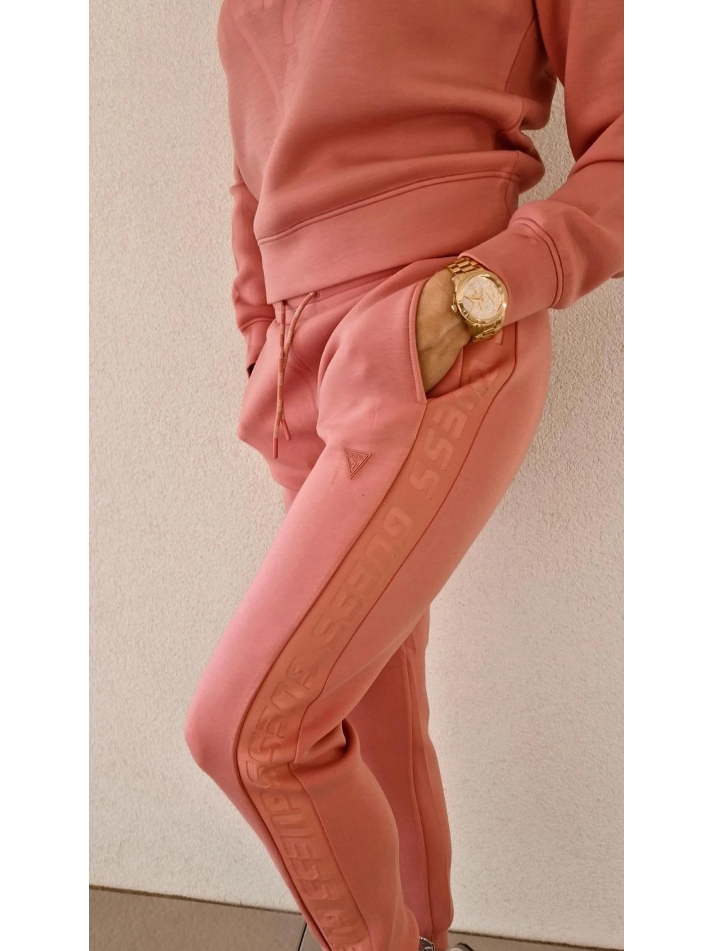 Dámske nohavice z kolekcie GUESS ACTIVE • materiál 51% bavlna, 49% polyester• v páse na gumu, ukončené patentom• po oboch stranách vrecká Odporúčame ich doplniť ku mikine...