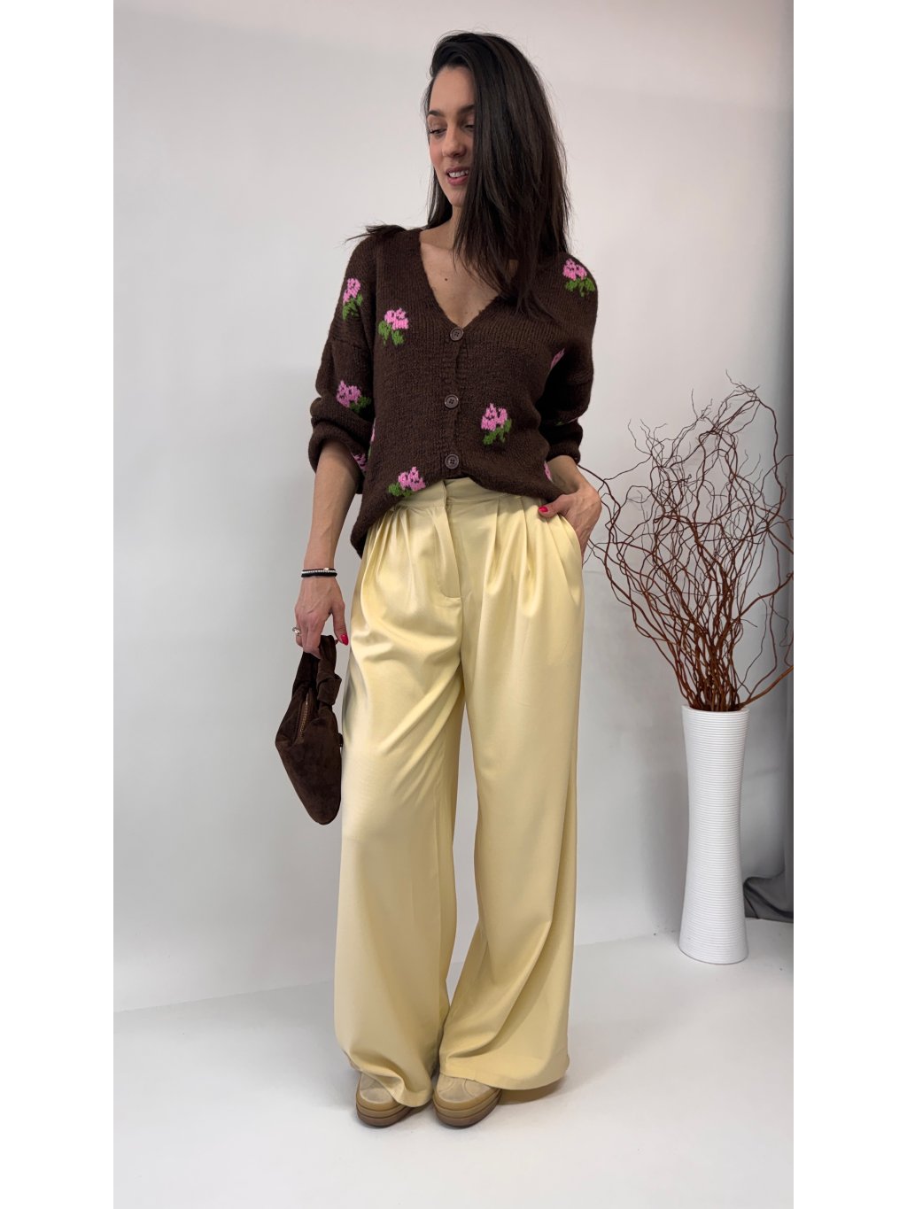 Dámske nohavice so zaujímavým viazaním • materiál 89% viskóza, 11%polyamid • zapínanie na zips a gombík, po oboch stranách vrecká • široký strih...