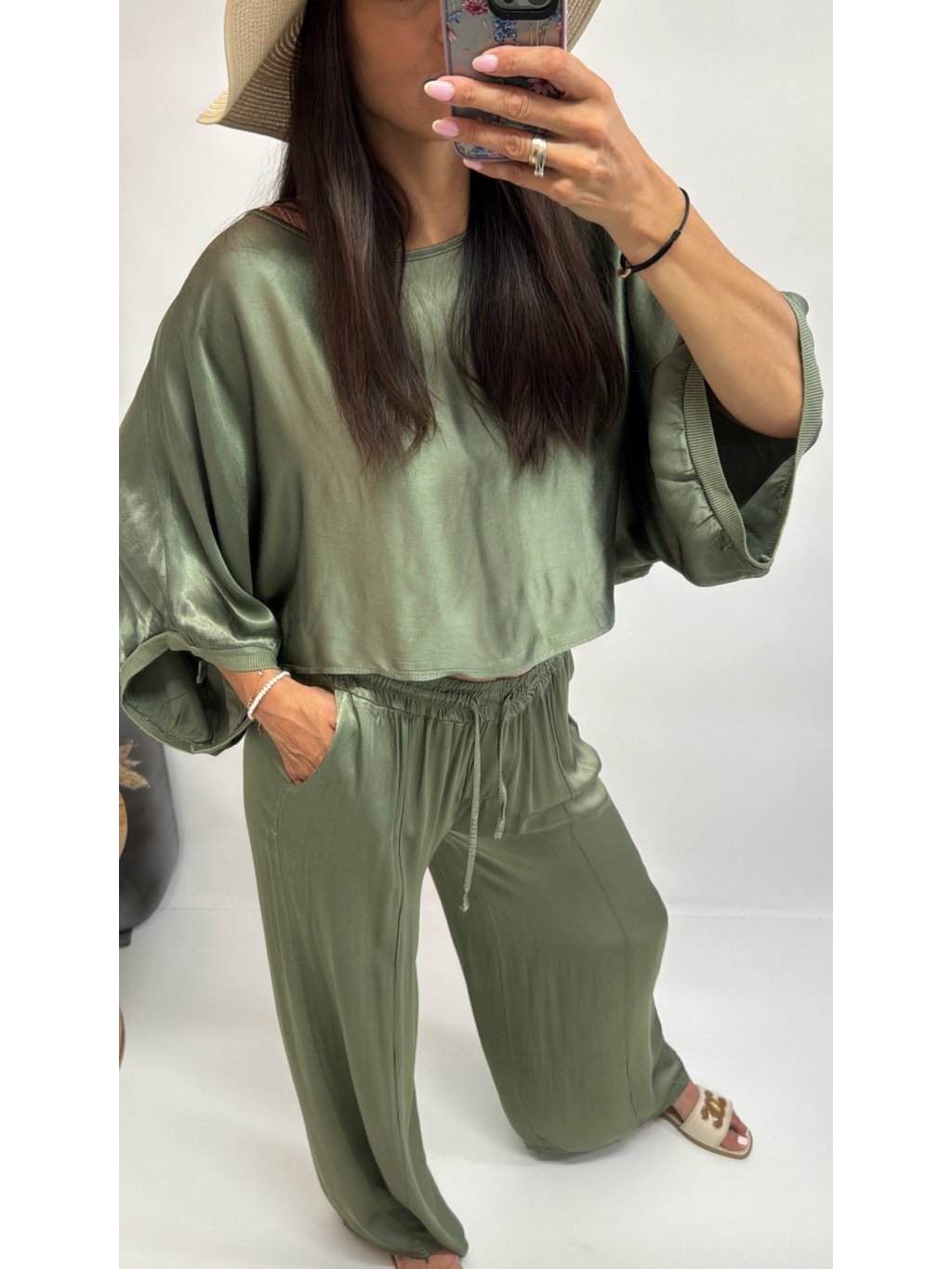 Dámske saténové nohavice v UNI veľkosti • materiál 80% viskóza, 20% hodváb • nohavice v páse na gumu • ozdobná šnúrka na viazanie • široký strih ...