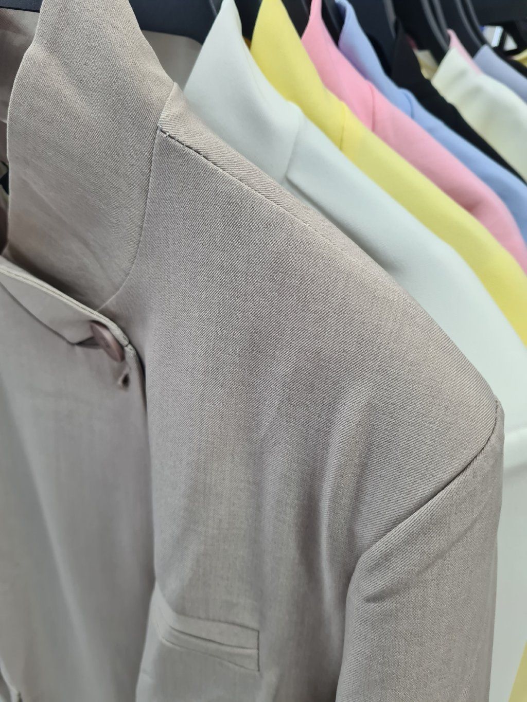 Dámske sako s jemnými vypchávkami na pleciach • materiál 95% polyester, 5% elastan • zapínanie na gombík • po oboch stranách falošné...