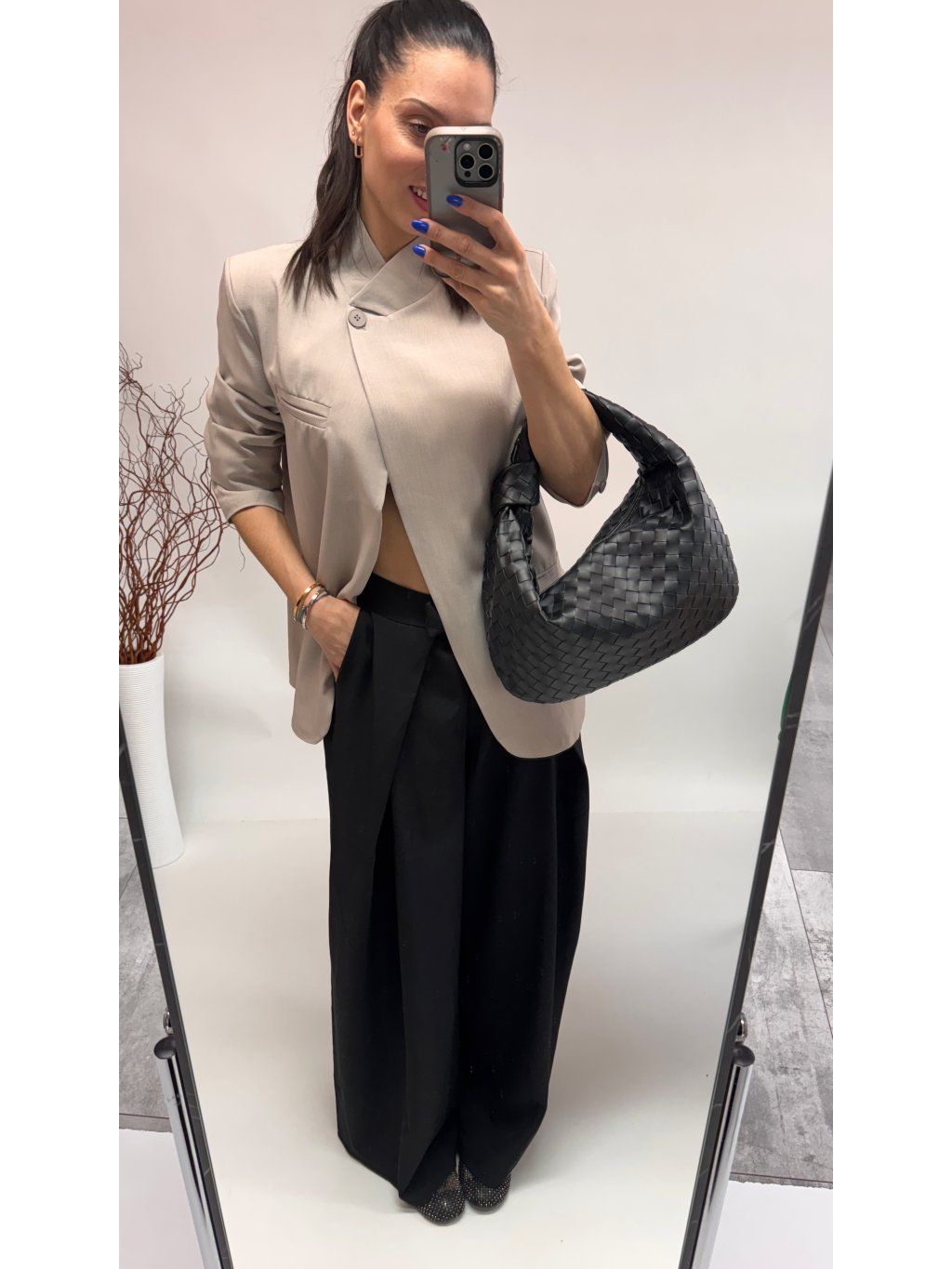 Dámske sako v zaujímavom strihu v UNI veľkosti • materiál 96% polyester, 4% elastan • zapínanie na gombík * made Italy ...