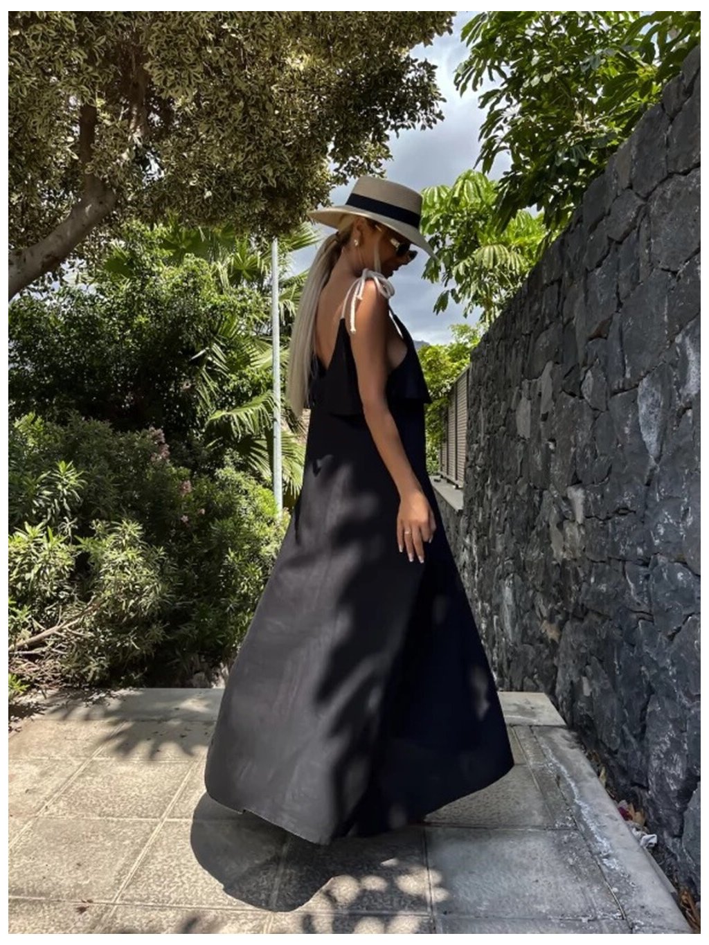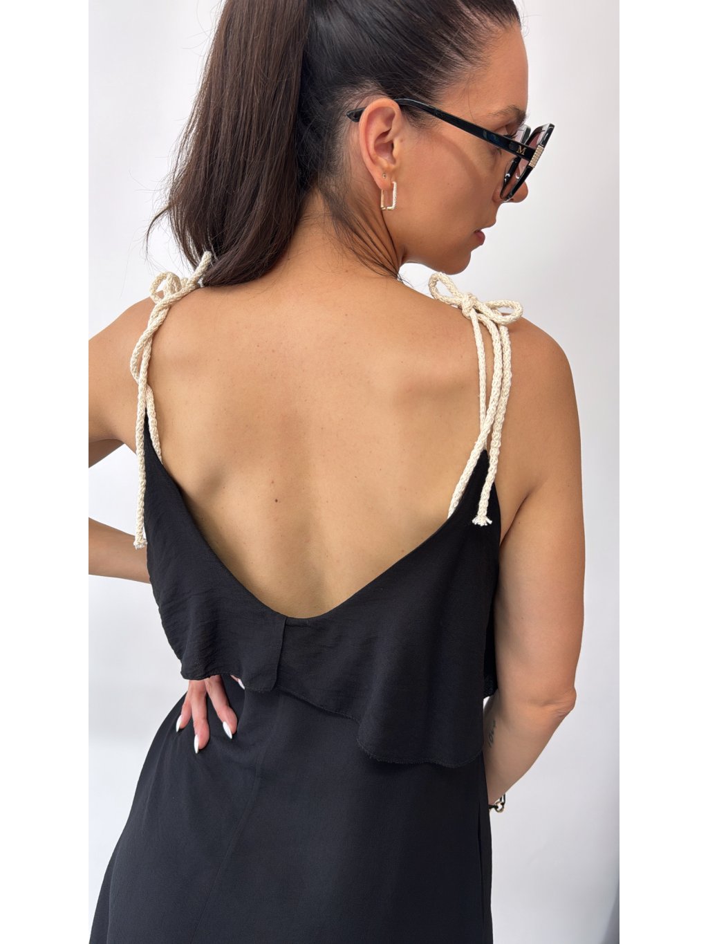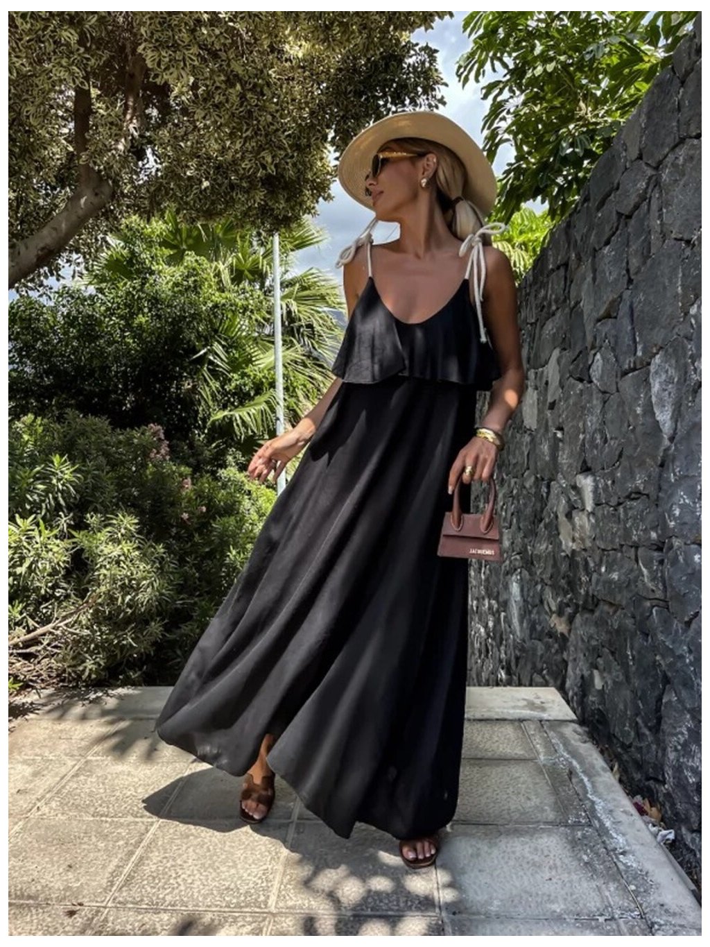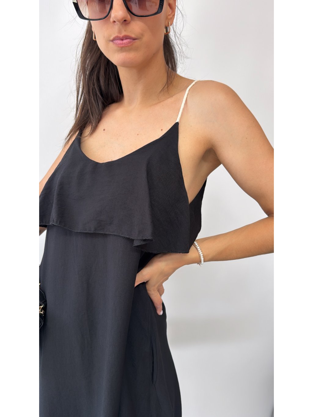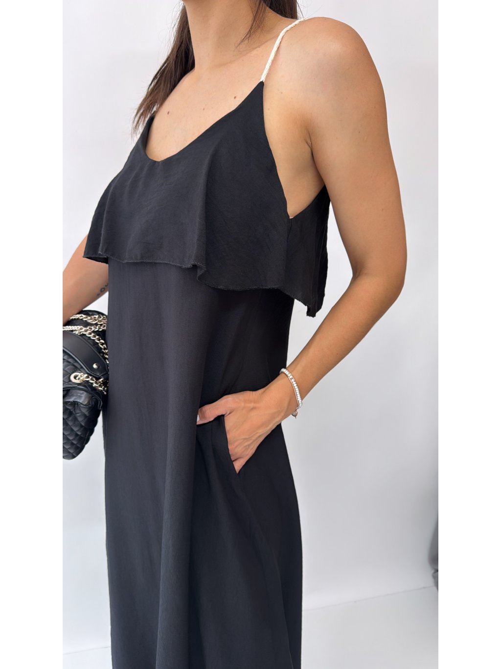 robe longue viscose evasee a bretelles cordon beige et poches noir 67ed045832f19