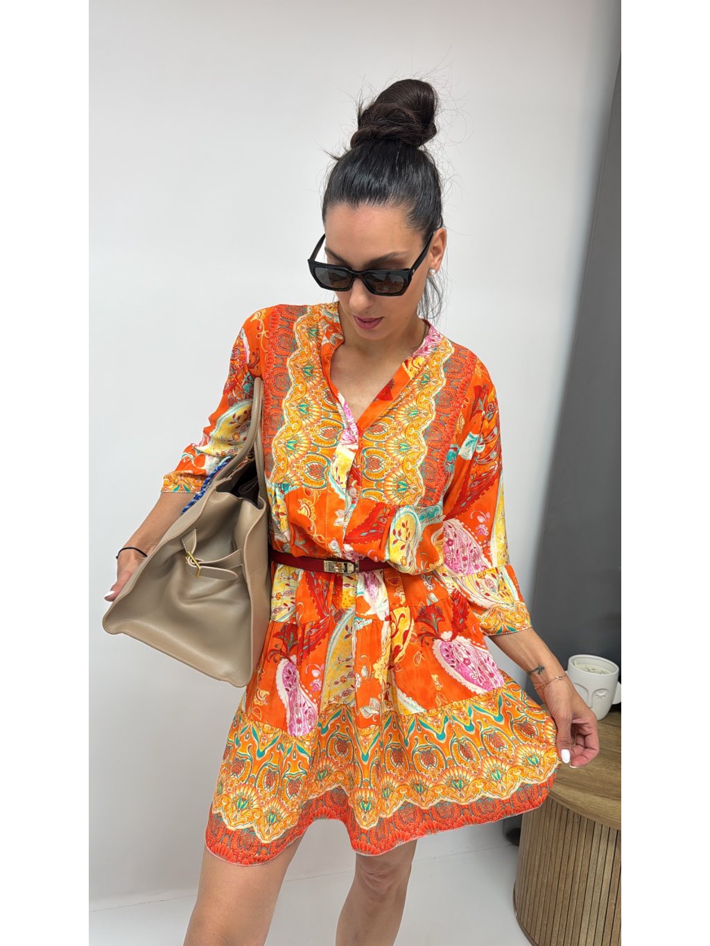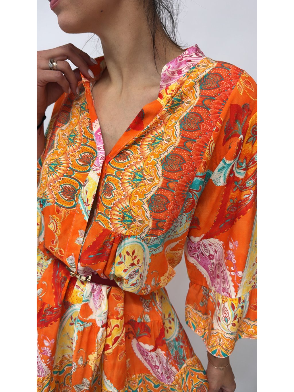 Dámske šaty s opaskom • materiál 70% bavlna, 30% polyester • zapínanie na gombíky • rukávy ukončené patentom na gombík • súčasťou šiat je opasok * made...