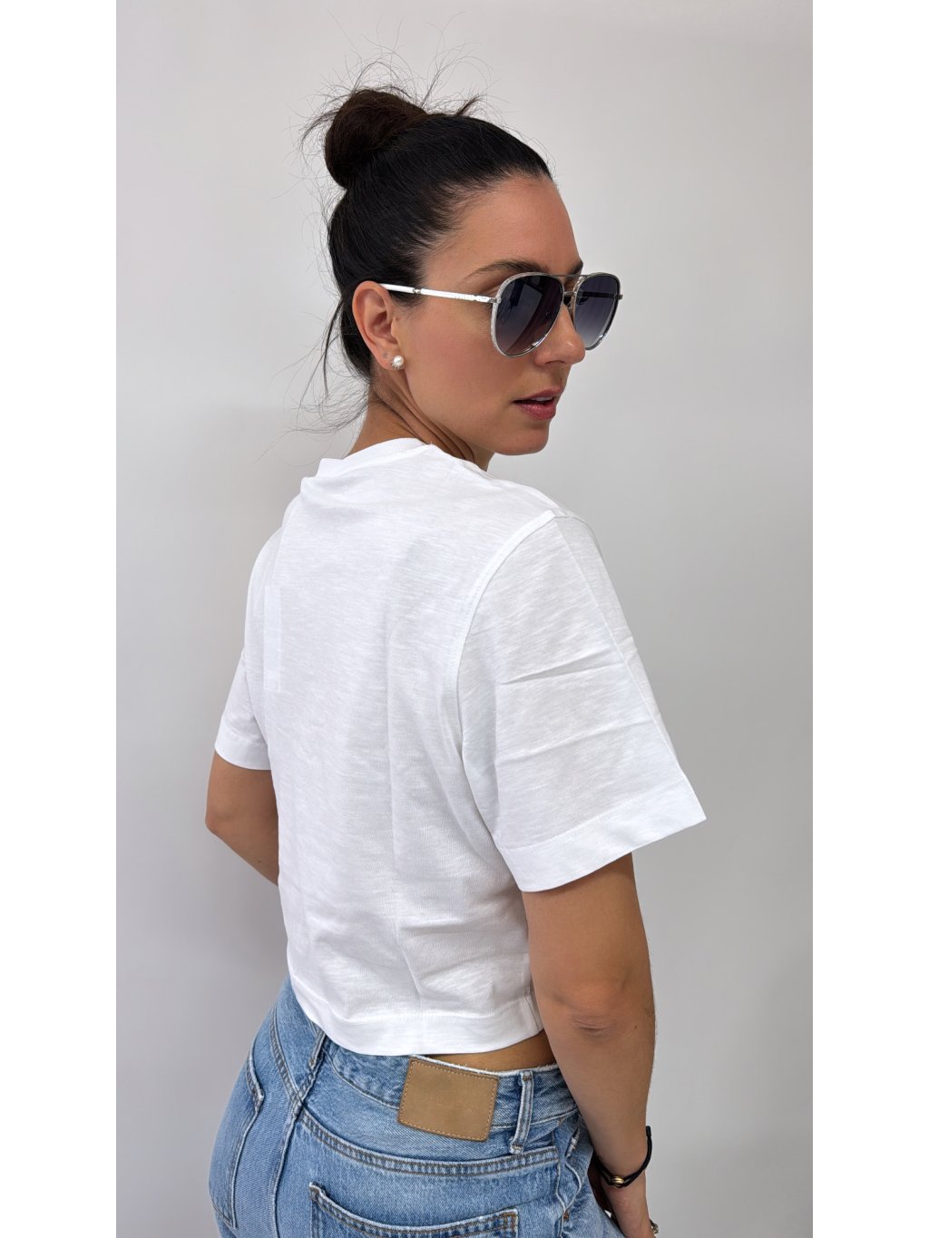 Dámske crop top tričko • materiál 46,6% bavlna, 46,6% viskóza, 6,8% elastan • rebrované tričko * made in China