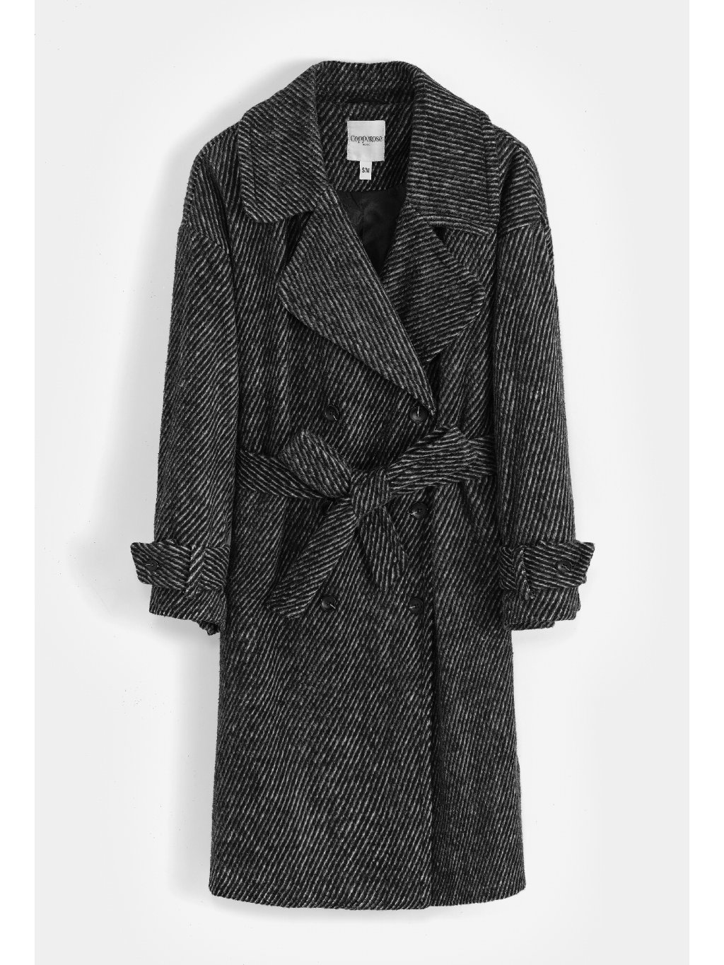 Dámsky kabát s opaskom a jemnými vypchávkami na ramenách • materiál 96% polyester, 4% elastan• model s podšívkou• zapínanie na gombíky• voľnejší strih * made in P.R.C