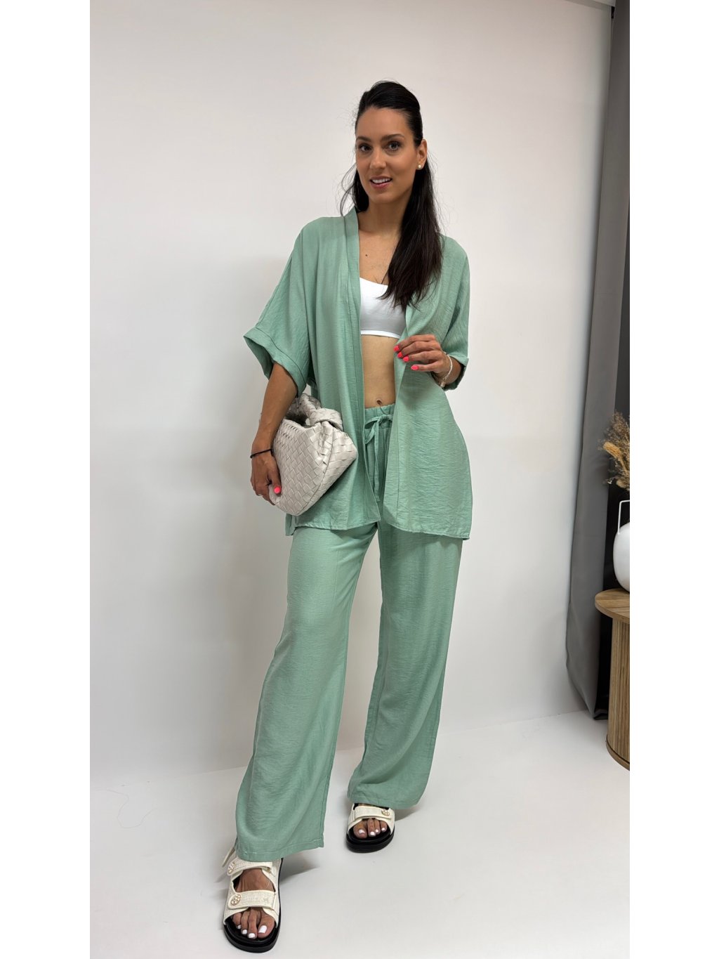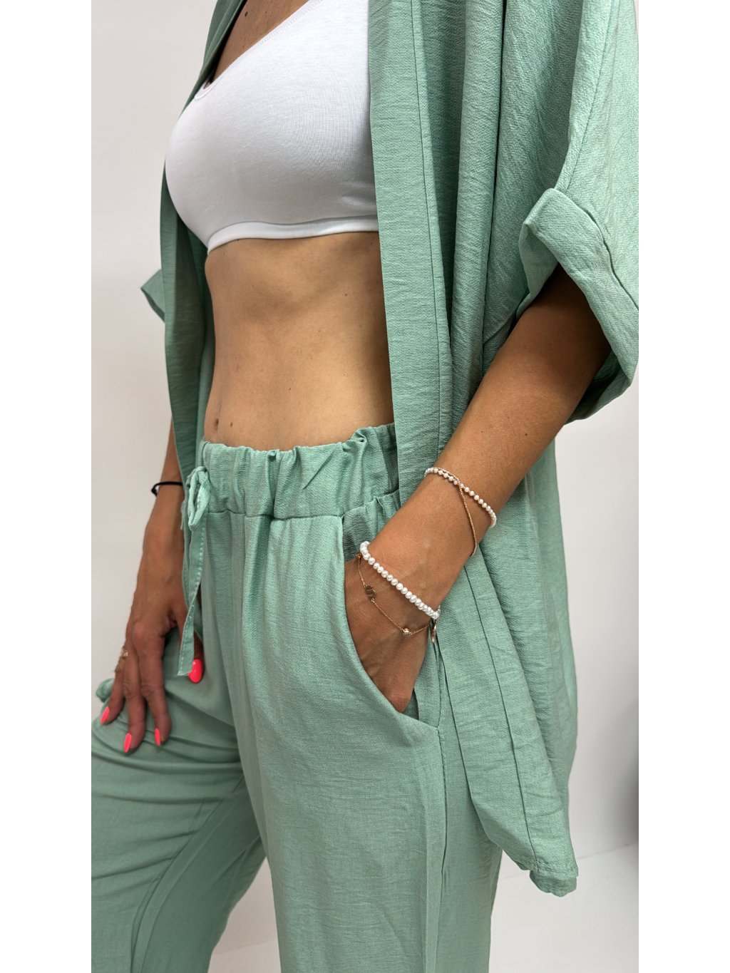 Dámsky ľanový komplet v UNI veľkosti • 2 - dielny komplet, šortky a košeľa • materiál 55% ľan, 45% viskóza • košeľa sa zapína na gombíky• rukávy ukončené patentom...