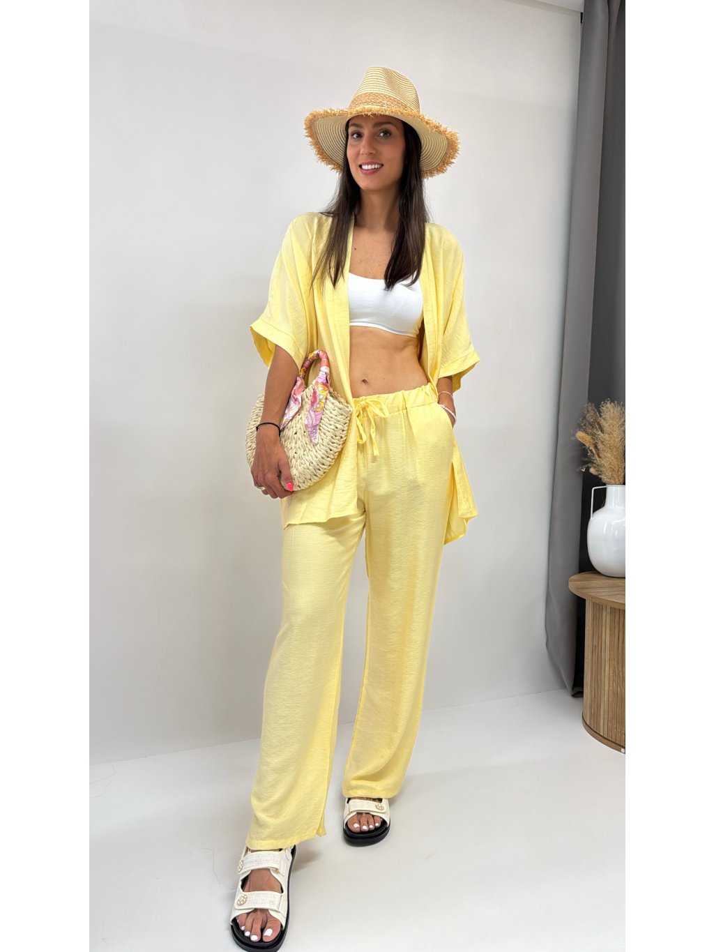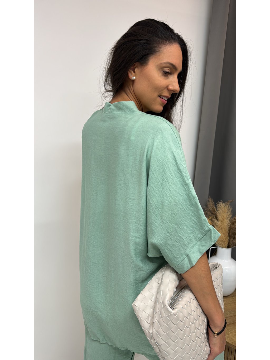 Dámsky komplet v UNI veľkosti • 2 - dielny komplet, košeľa a nohavice • materiál 100% viskóza • košeľa oversize strihu • nohavice v páse na gumu, po oboch...