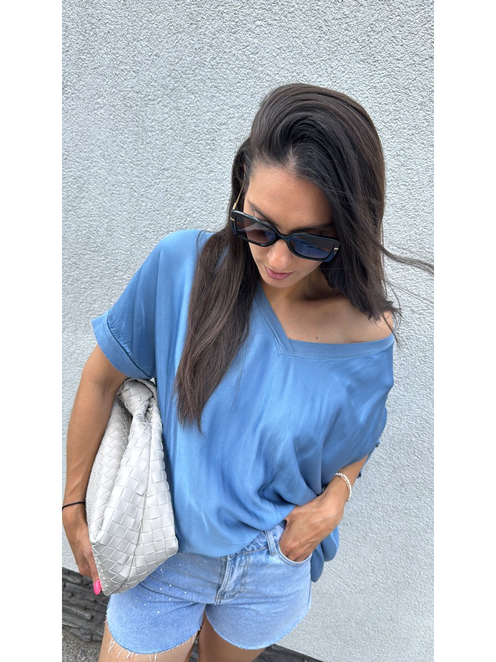 Dámsky top v svetlomodrej farbe • materiál 70% polyester, 25% viskóza, 5% elastan • V - čkový výstrih * kvalitný produkt poľského výrobcu