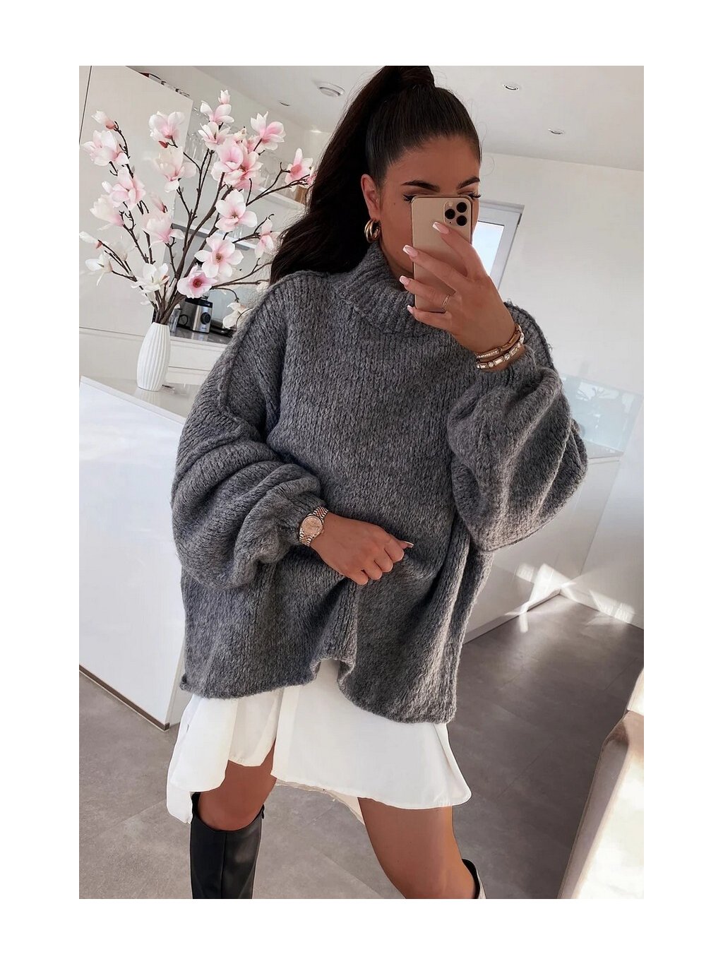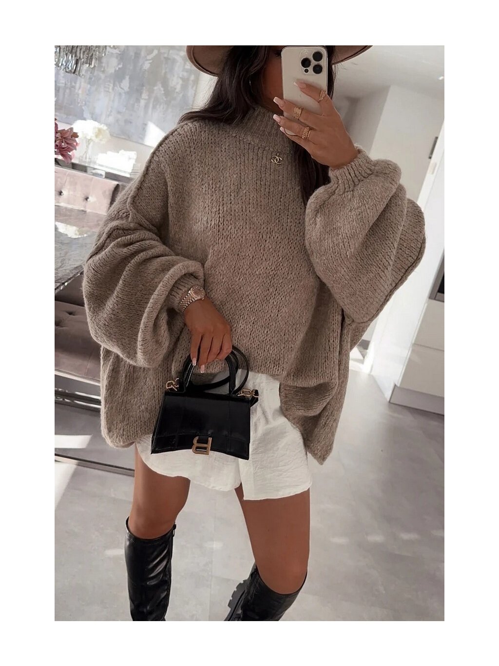 Dámsky rebrovaný sveter s kožušinovým golierom v UNI veľkosti