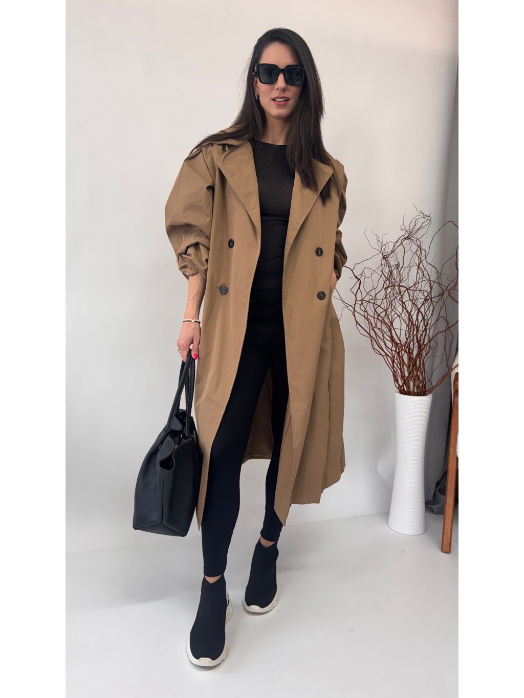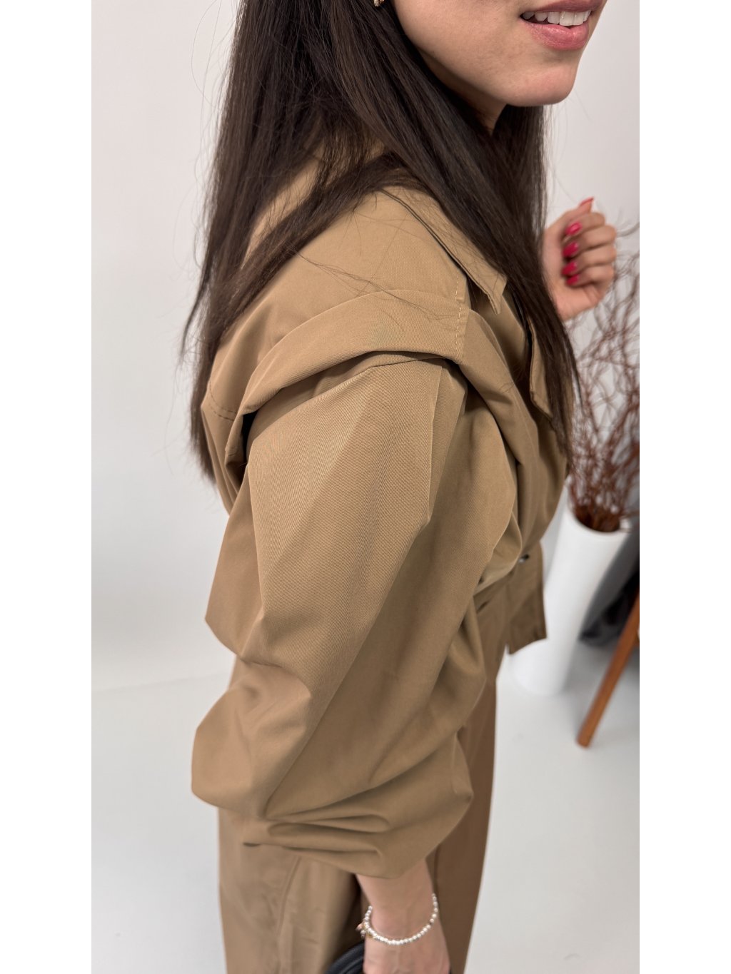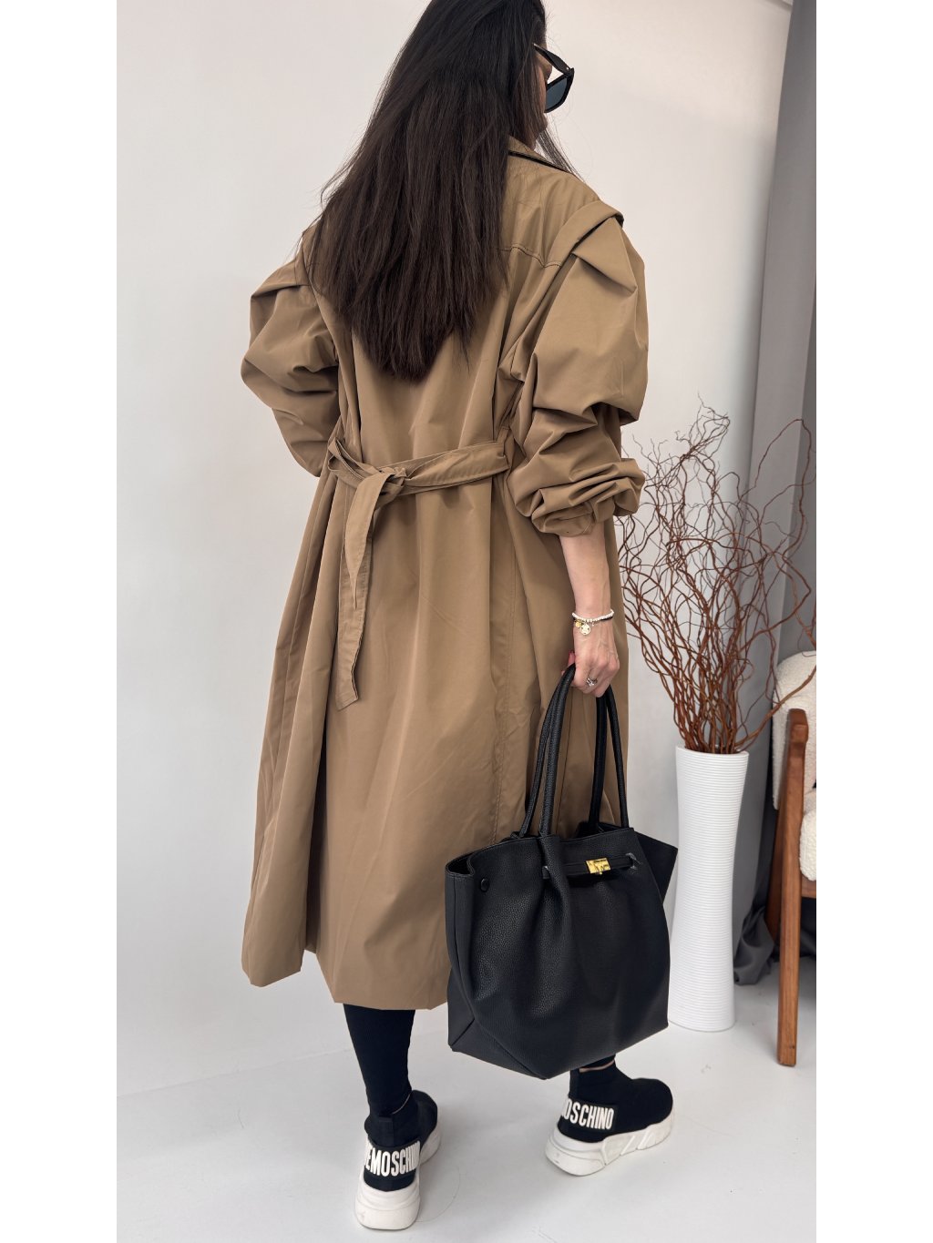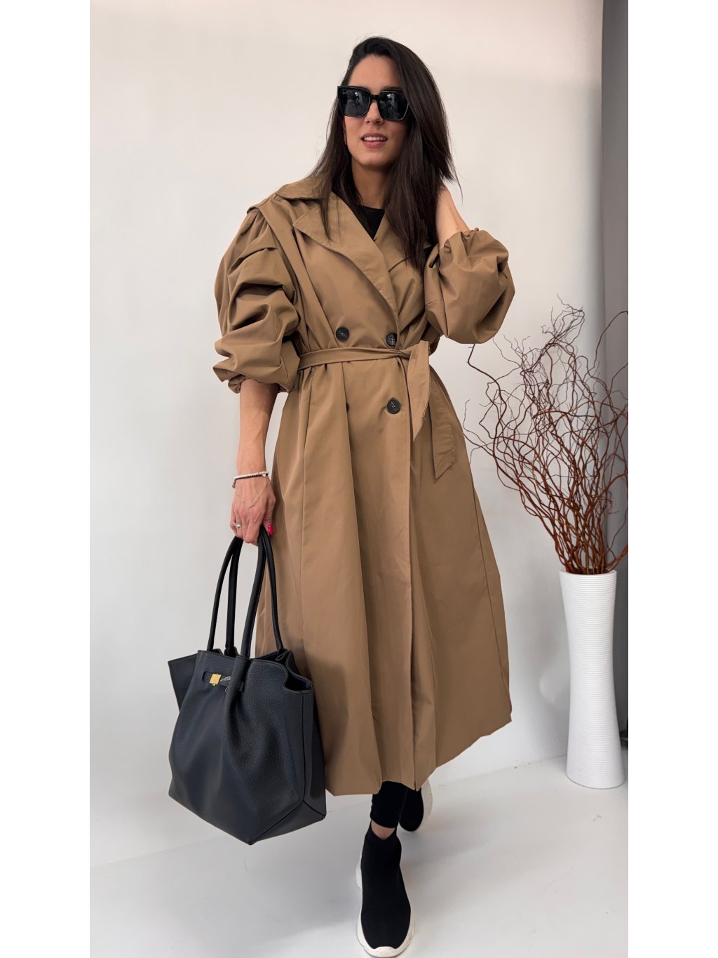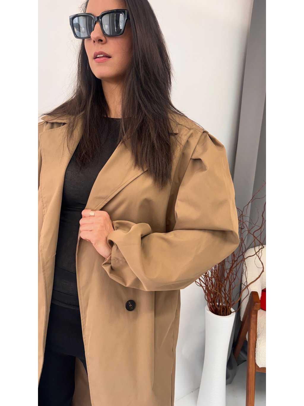 Dámsky trenchcoat s opaskom a jemnými vypchávkami na ramenách • materiál 96% polyester, 4% elastan - semišový materiál• model s podšívkou• zapínanie na gombíky• voľnejší strih...