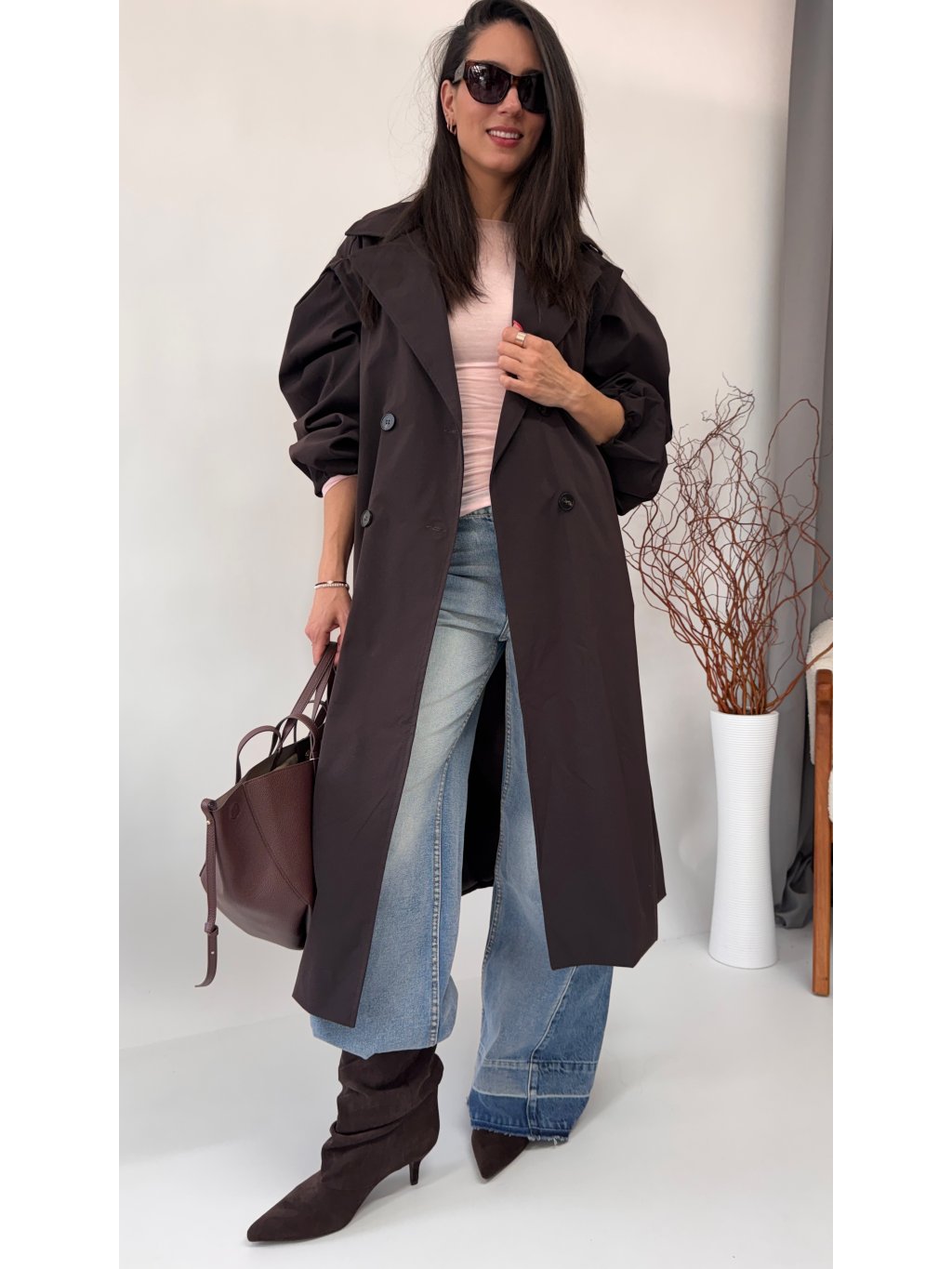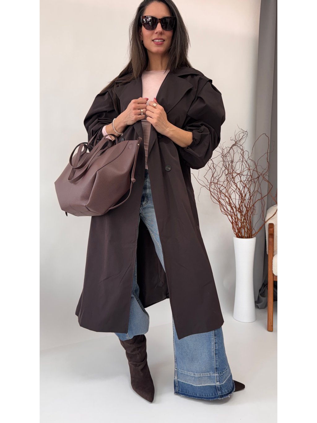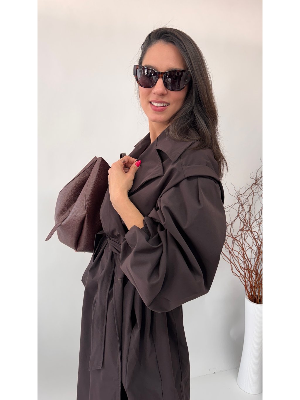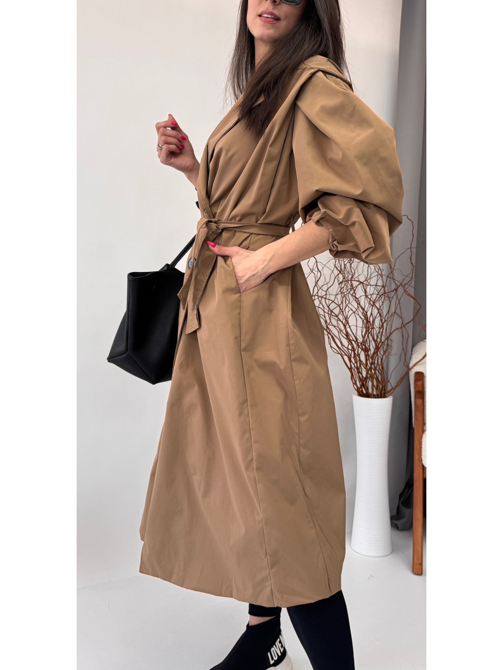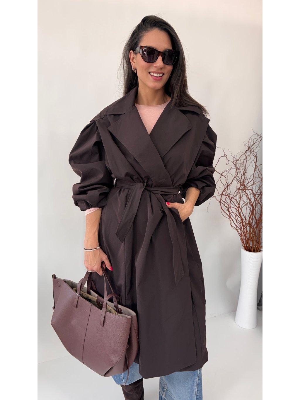 Dámsky trenchcoat s opaskom a jemnými vypchávkami na ramenách • materiál 96% polyester, 4% elastan - semišový materiál• model s podšívkou• zapínanie na gombíky• voľnejší strih...