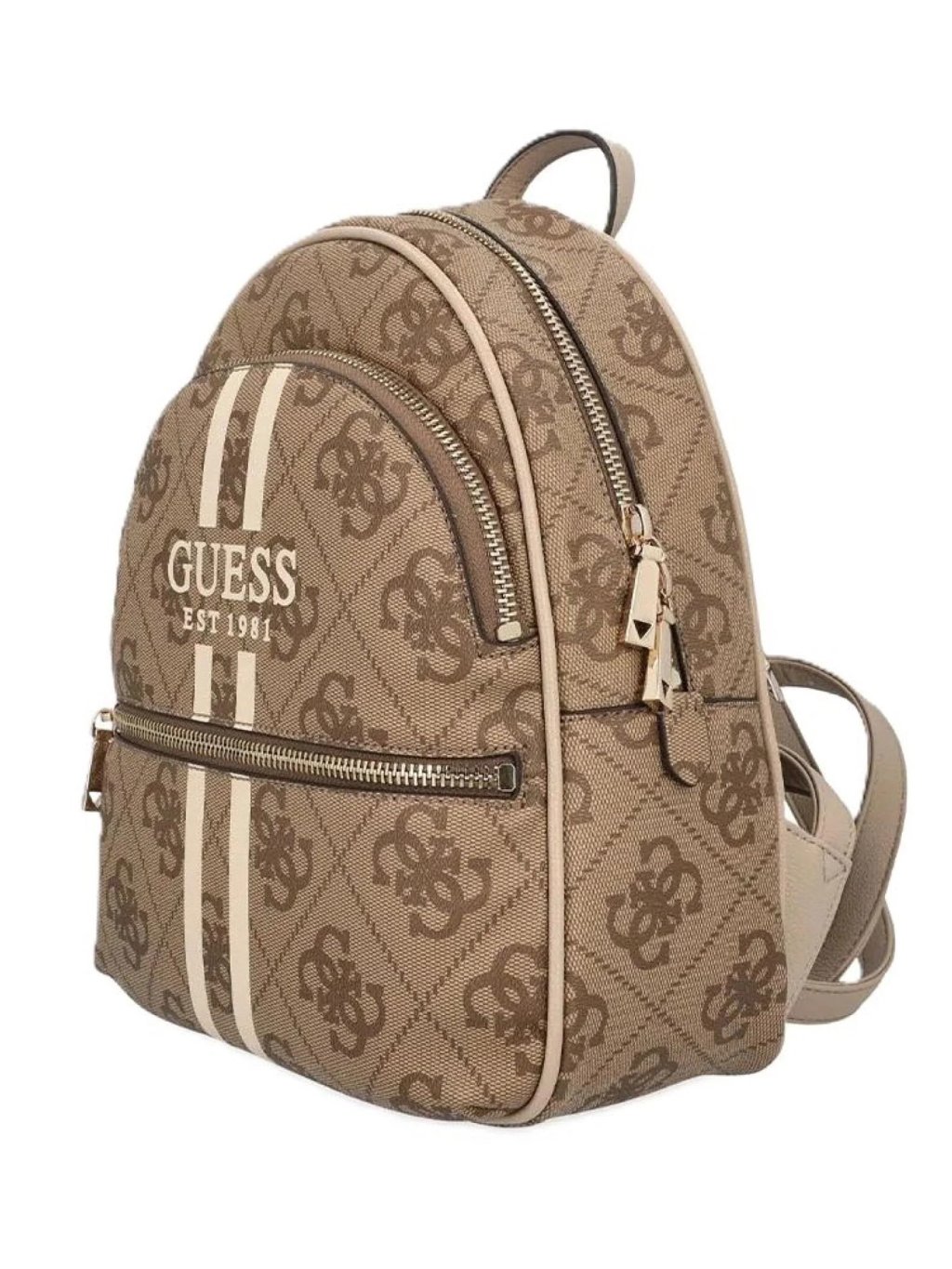 Ruksak Guess malý so 4g logo potlačou v svetlohnedej farbe (latte logo) z kolekcie MANHATTAN